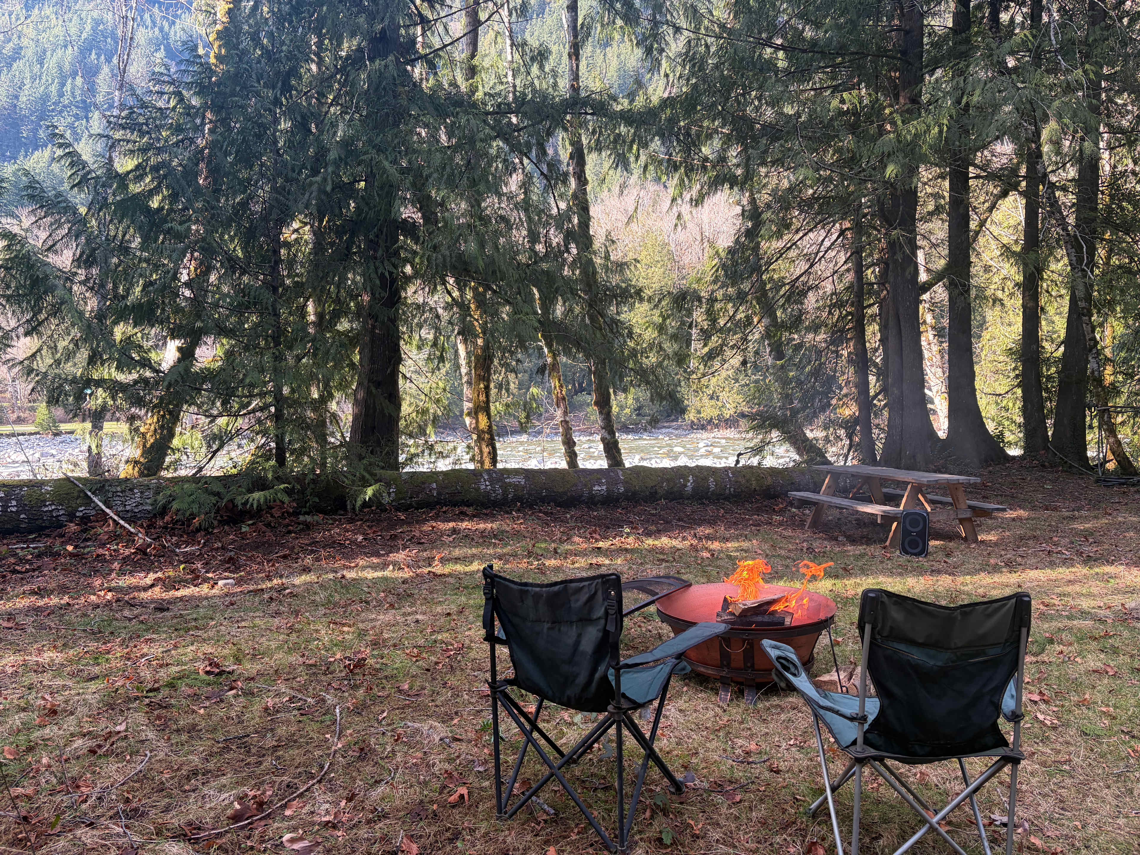 Welcome to ‘Index Riverside Camp’ located just past the adorable and stunningly beautiful town of Index. We offer two sites on our 3 ½ acre waterfront property which is set upon the Northfork of the Skykomish River. Site 1: 'The Camper's Site' The ‘RV/Camper Van and Tent Site’ is located to the left as you pull into the property. Park, situate and make yourselves at home near your above ground fire pit and picnic table overlooking that gorgeous river. Set up your scene and enjoy. Site 2: 'The Little Rustic Red Cabin' The ‘Little Rustic Red Cabin’ site offers an in-ground heart shaped fire pit as well as a picnic table for outdoor dining. Inside the 358 sq ft cabin is a wood stove that heats the place up nicely. The cabin can sleep six if you like each other, haha; offering one full size bed and one full size futon in the bedroom as well as one queen futon in the living room that faces a smart t.v. utilizing Starlink Internet. The kitchen offers all of your kitchen needs(minus running water from the faucet). Also, in the cabin you’ll find a smart speaker to hook up to, two African style djembe drums, a ukulele and an Australian didgeridoo. Let your musical side come on out! Note: There is no running water on site or septic system. Bring your own drinking water or filter from the river. Water is available in town as well. A porta potty is centered between the camping site and the cabin site. For now; Bring your own fire wood. We will have fire wood for purchase very soon. Bring your food, water and all your essentials for having a lovely camping and outdoor experience in one of the most beautiful areas of Washington State. Enjoy the lovely walking trails on the back 3 acres of the property. Please take your trash and recycle and clean up after your doggies. Secure your food items so as to not attract wildlife or bears. Be safe in the river. Have fun!'The Camper's Site' is located in our nice and open grassy yard space right on the banks of the Northfork of the Skykomish River ready for you to park and set up your awesome camping scene, whether it be snug and cozy or elaborate. An above ground fire pit and picnic table are set up for you to utilize, unwind, relax and start enjoying your stay with all Index and the surrounding area has to offer. Bring all your typical camping necessities: Firewood, Camp Stove, Warmth, Drinking Water(or filter from the river), Garbage/Recycle Bags to pack it in-pack it out, Doggie Bags, Games, Outdoor Adventure Stuff, etc. The Outhouse/Porta Potty is located in the center area between 'The Camper's Site' and the 'The Little Rustic Red Cabin'. There are no electrical hook-ups at this time. This area is so beautiful. The community is a treasure. Nature is never ending. Enjoy your stay everyone.
