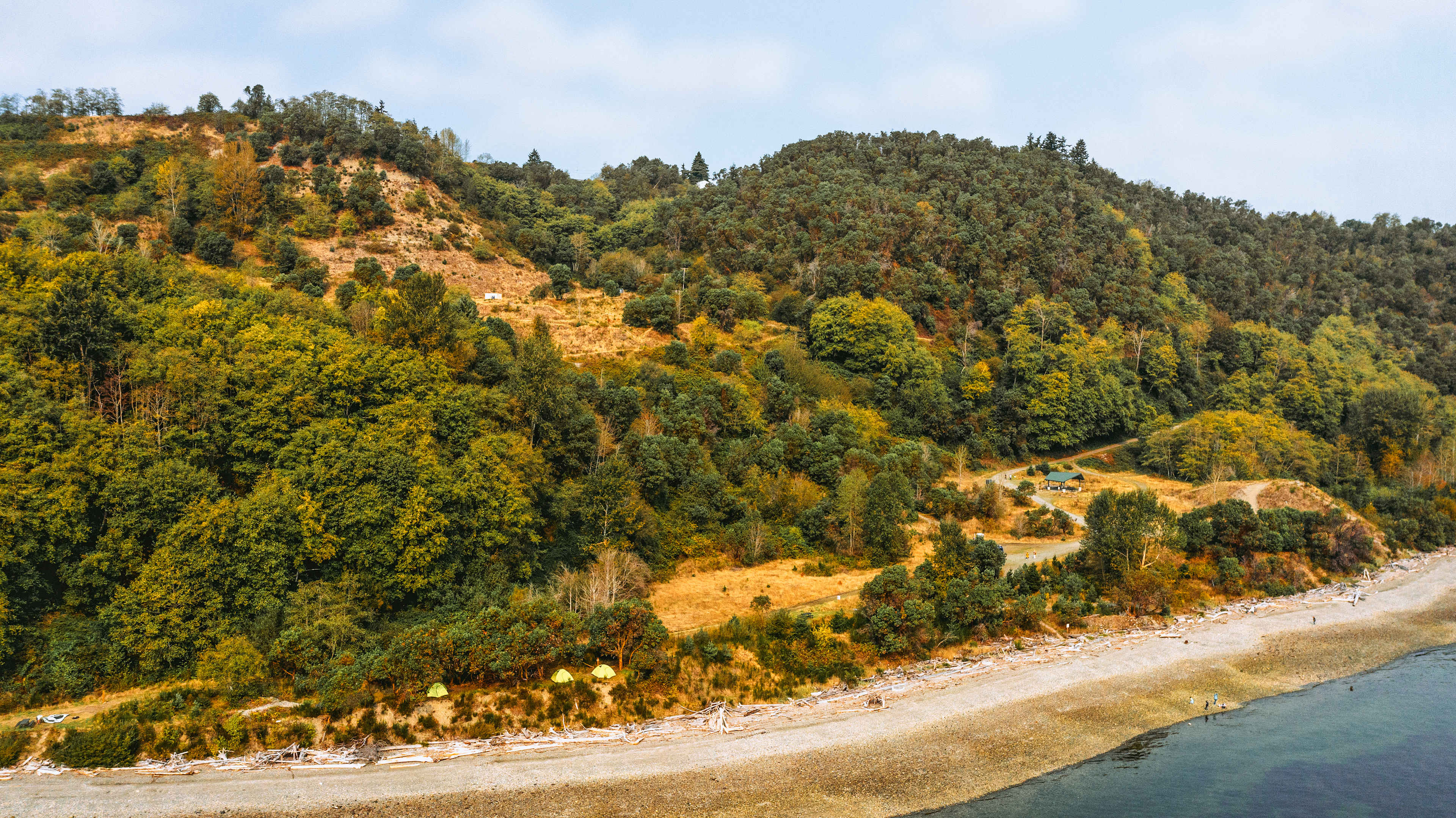 Bike, kayak or hike into this spectacular park on Maury Island, where your tent campsite near the beach awaits. Mount Rainier peaks out on sunny days, madrona trees branch overhead, while otters and bald eagles put on a show. There is a 3/4 mile walk down a gravel service road, with an average grade of 8%, from the parking lot! Pack accordingly, or plan to bike or paddle in for closer access. Camping is open May through October. **If you would like to book the entire campground, please email us at hello@camponvashon.com** Please pack-in and pack-out. Fire is prohibited. Amenities include use of the picnic shelter, port-a-potty bathrooms, picnic tables near the campsites and a kayak/paddleboard storage rack off of the beach trail. There is no water available so please pack in enough water for your stay. To protect the park, please abide by the camping rules. FIRES AND ALCOHOL PROHIBITED. Our campsites are located in parks with limited access for fire fighters. Fires will be and are reported. The risk isn’t worth it! Directions to your site: Parking lot for vehicles and trail access is on SW 244th Street (GPS coordinates 47.38564509862387, -122.39947726859351). Maury Island Natural Area is served by Metro bus route 119 along Dockton Road SW. Arriving by bike - see the Vashon Bike Map image for routes. King County's Maury Island Marine Park brochure has information to help you plan. This campground is located within Maury Island Marine Park, on the east side of Maury Island, a peninsula of Vashon Island. One of the largest undeveloped properties located directly on Puget Sound with more than 1 mile of shoreline, the park provides stunning views of the East Passage, Mount Rainier and the Cascade Mountains. The site had significance for early Native Americans and is referenced in a legend about Snake People who arrived from the mainland as part of war party. The park contains rare stands of Pacific Madrone, a salt marsh, eelgrass beds and significant fish and wildlife habitat for such species as great blue herons, bald eagles, kingfishers, chinook salmon, orca, and bull trout. Trail length within the park: 3 miles (plus .75 mile gravel maintenance road to the shoreline accessible to non-motorized vehicles only).