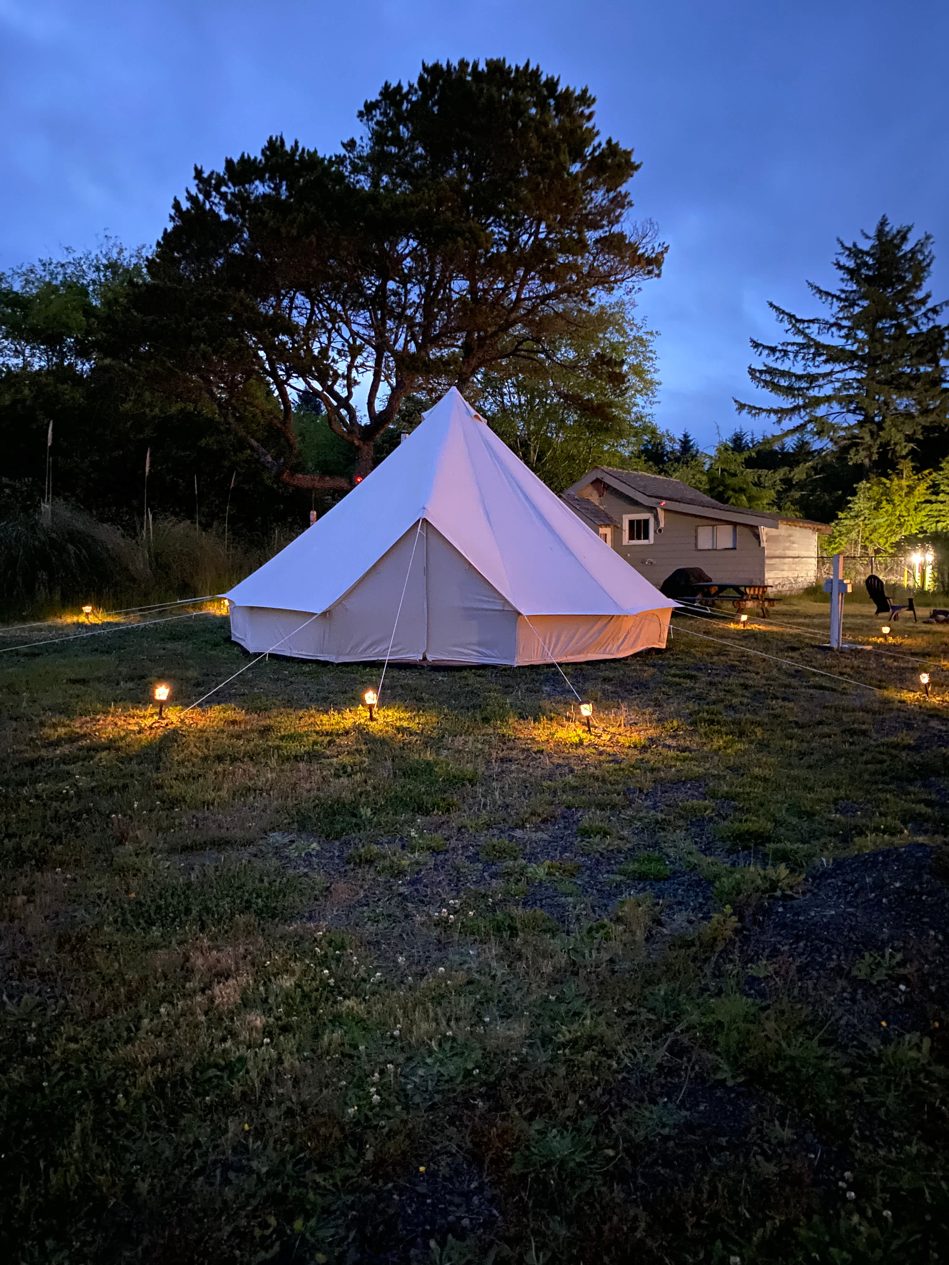 Moby's "Stout" Bell Tent is your Seaside adventure away from home. A wood burning fireplace, comfy bed, detached FULL BATHROOM & bistro table offer plenty of cozy privacy 4 blocks from Pacific Beach, WA, and a 3 minute drive to Seabrook seaside resort. Enjoy an easy walk to the beach, local Surfhouse Cafe for coffee and cinnamon rolls and peacefully enjoy your evenings roast marshmallows over your own outdoor firepit. Our Bell Tent is located on our adjacent property to Moby's Beachhouse. The space Welcome to Moby's Cozy Coastal Glamping experience, boho Canvas Glam Tent in Pacific Beach, ideally located just a 5-minute flat walk from the beach and a 3-minute drive from Seabrook Resort! This spacious 300 square foot tent comfortably accommodates two adults, a perfect retreat near the beach. Interior wood burning fireplace (first set of firewood included and fire set & ready to light), Gas BBQ, Outdoor firepit and separate, private heated full bathroom. The heated full bathroom is located in the separate newly built garage where you will also find a coffee bar with biscotti treats. The garage space is not shared with the primary Moby's Beachhouse rental. Please bring wood for your outdoor firepit fire, which can easily be purchased down the street at the local market. Please note you have access to the yard and area where the tent is located. A white fence separates your area from Moby's Beachhouse, next door. Our cozy tent sleeps 2, includes a comfy full size bed, interior wood burning fireplace, bistro table and a private, full heated bathroom located in the new garage next to the tent. An outdoor firepit, Propane BBQ and picnic table are also on the property for Yurt use. Sleeps 2, No pets in the tent. The two outbuildings on the property are unoccupied. This is a separate booking from Moby's Beachhouse. This is an open, grassy lot with a large tree and beach grass. There is a new garage adjacent which contains the full heated bathroom and a coffee station for your private, exclusive use. The garage is not rentable, nor used for cars. The property is off of a non busy road that is used by neighbors.Moby's "Stout" Bell Tent is your Seaside adventure away from home. A wood burning fireplace, comfy bed, detached FULL BATHROOM & bistro table offer plenty of cozy privacy 4 blocks from Pacific Beach, WA, and a 3 minute drive to Seabrook seaside resort. Enjoy an easy walk to the beach, local Surfhouse Cafe for coffee and cinnamon rolls and peacefully enjoy your evenings roast marshmallows over your own outdoor firepit. Our Bell Tent is located on our adjacent property to Moby's Beachhouse. The space Welcome to Moby's Cozy Coastal Glamping experience, boho Canvas Glam Tent in Pacific Beach, ideally located just a 5-minute flat walk from the beach and a 3-minute drive from Seabrook Resort! This spacious 300 square foot tent comfortably accommodates two adults, a perfect retreat near the beach. Interior wood burning fireplace (first set of firewood included and fire set; ready to light), Gas BBQ, Outdoor firepit and separate, private heated full bathroom. The heated full bathroom is located in the separate newly built garage where you will also find a coffee bar with biscotti treats. The garage space is not shared with the primary Moby's Beachhouse rental. Please bring wood for your outdoor firepit fire, which can easily be purchased down the street at the local market. Please note you have access to the yard and area where the tent is located. A white fence separates your area from Moby's Beachhouse, next door. Our cozy tent sleeps 2, includes a comfy full size bed, interior wood burning fireplace, bistro table and a private, full heated bathroom located in the new garage next to the tent. An outdoor firepit, Propane BBQ and picnic table are also on the property for Yurt use. Sleeps 2, No pets in the tent. $35 cleaning fee is included in the total booking fee. The two outbuildings on the property are unoccupied. This is a separate booking from Moby's Beachhouse. This is an open, grassy lot with a large tree and beach grass. There is a new garage adjacent which contains the full heated bathroom and a coffee station for your private, exclusive use. The garage is not rentable, nor used for cars. The property is off of a non busy road that is used by neighbors.