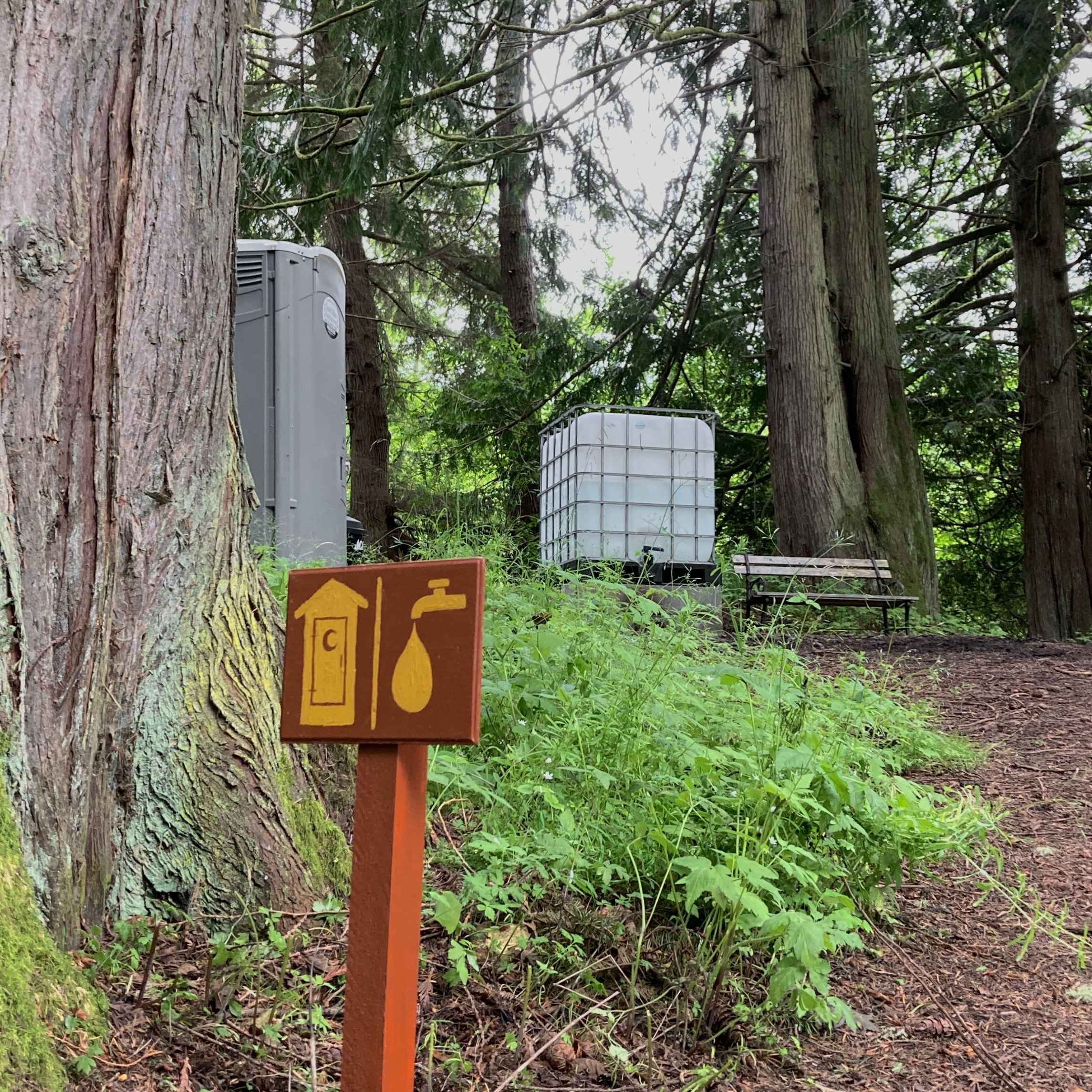 Site 1 is on the right. There is parking for one vehicle. You'll have your own picnic table and fire ring next to a huge cedar tree where you'll find plenty of space to pitch your tent.
