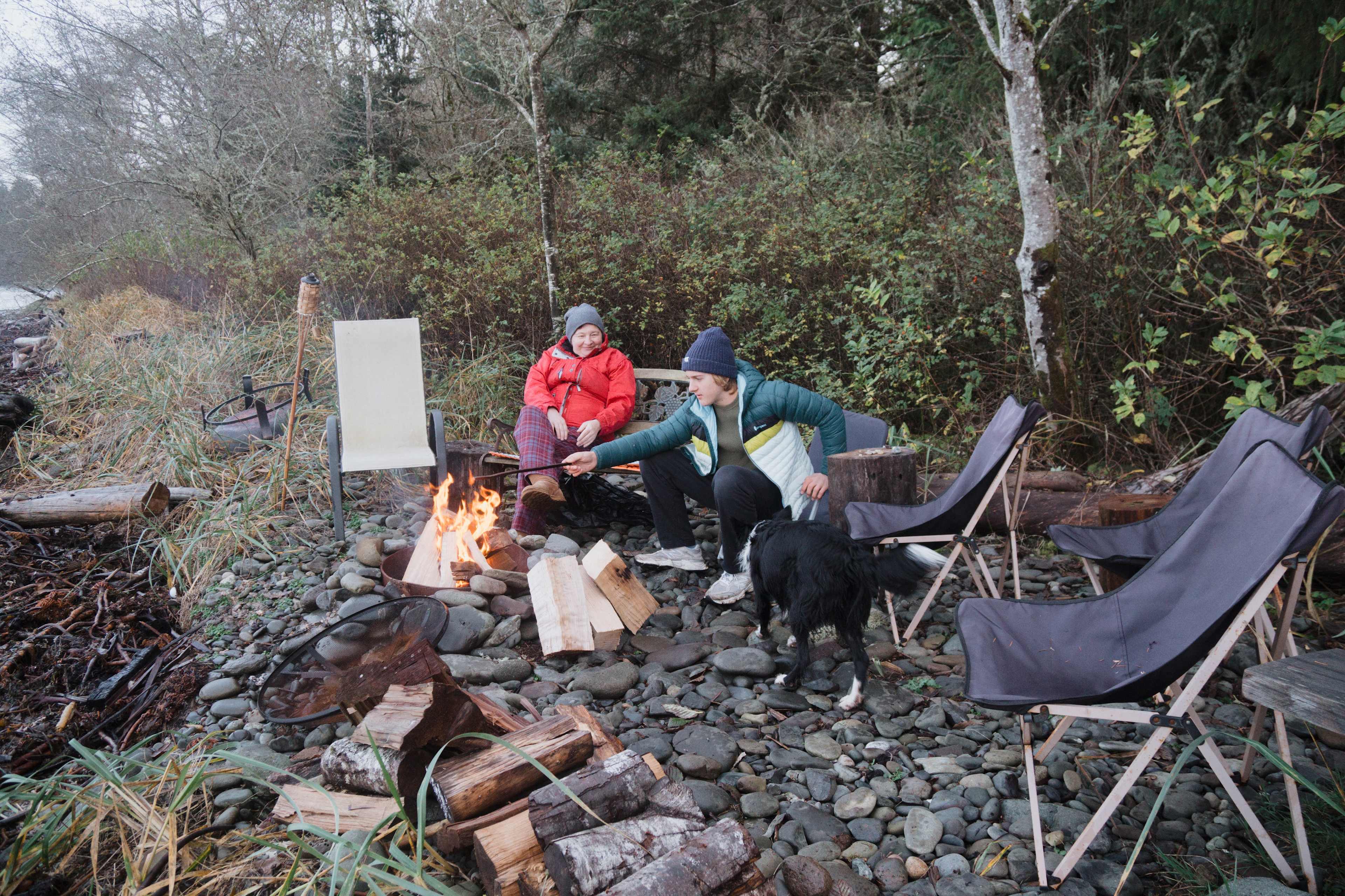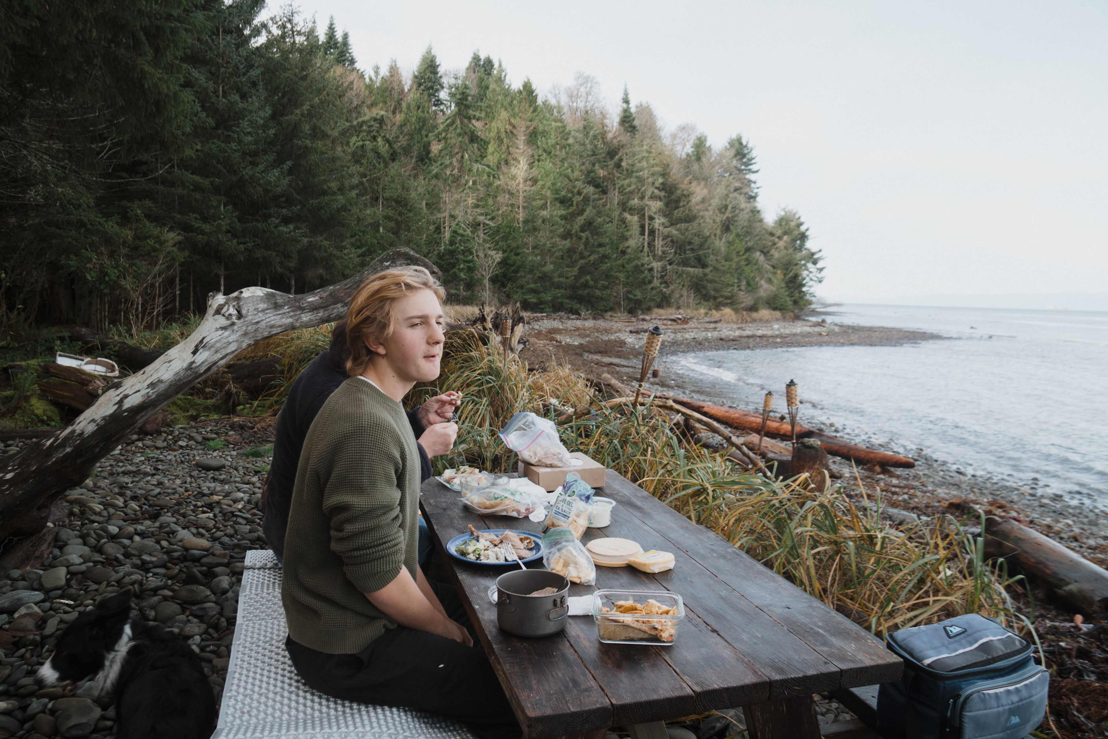 I liked having full-on beds installed in a stand-up tent ready for sleeping, without having to set up anything, or bring sleeping bags, pads, etc. the site is great and included bottled water, porta-potty, several fire pits, as well as tables and chairs. It's literally no effort to set up camp. The sight is next to a rocky beach which is against a dense forest. The dogs could be off-leash and bother no one. They were in heaven. So were we, but it's right on the Juan de Fuca Strait so make sure you can dress warmly. It is not a good place for swimming or sun-bathing. It is a good place for beach combing, enjoying the views, or kayaking.
