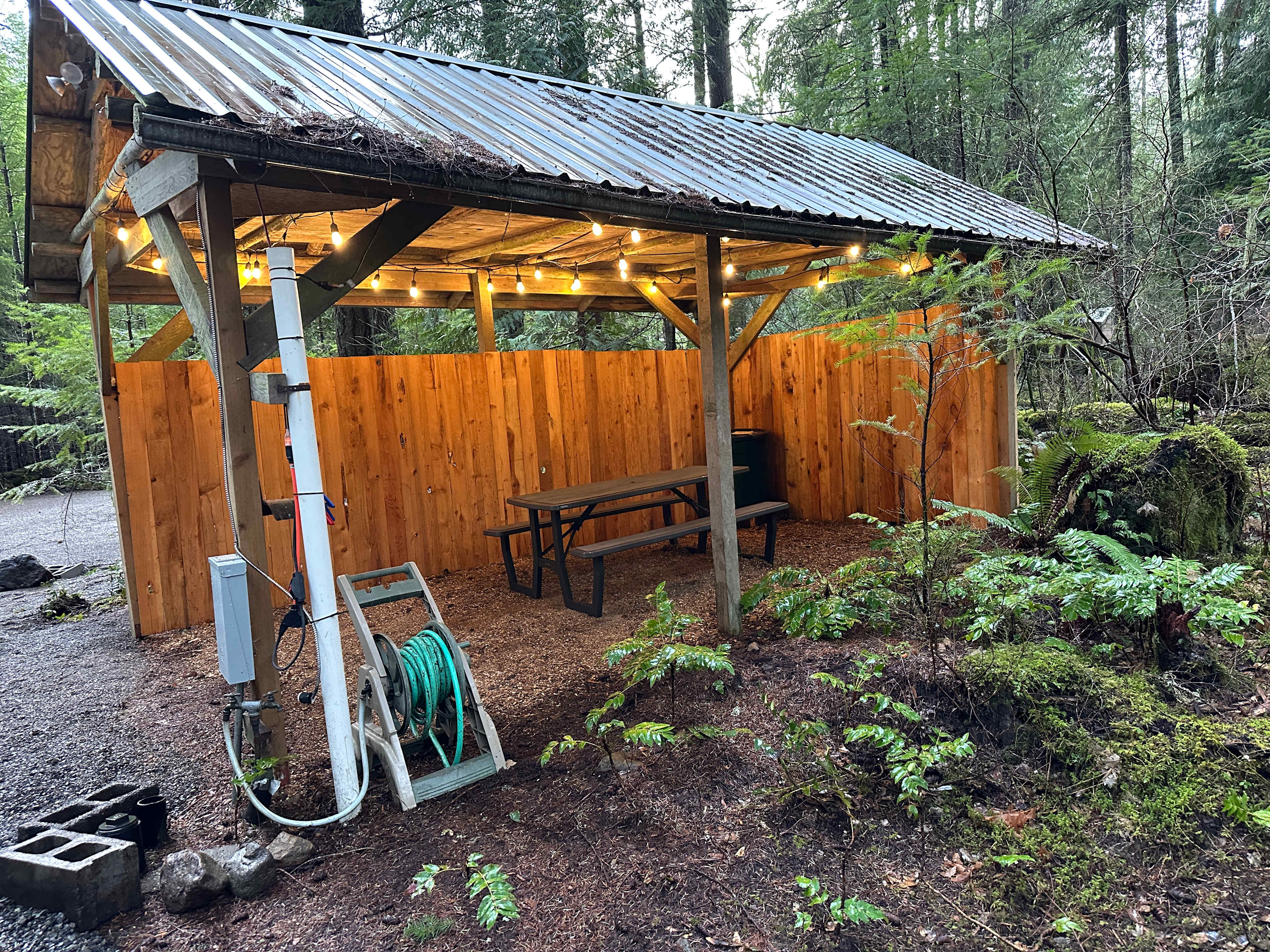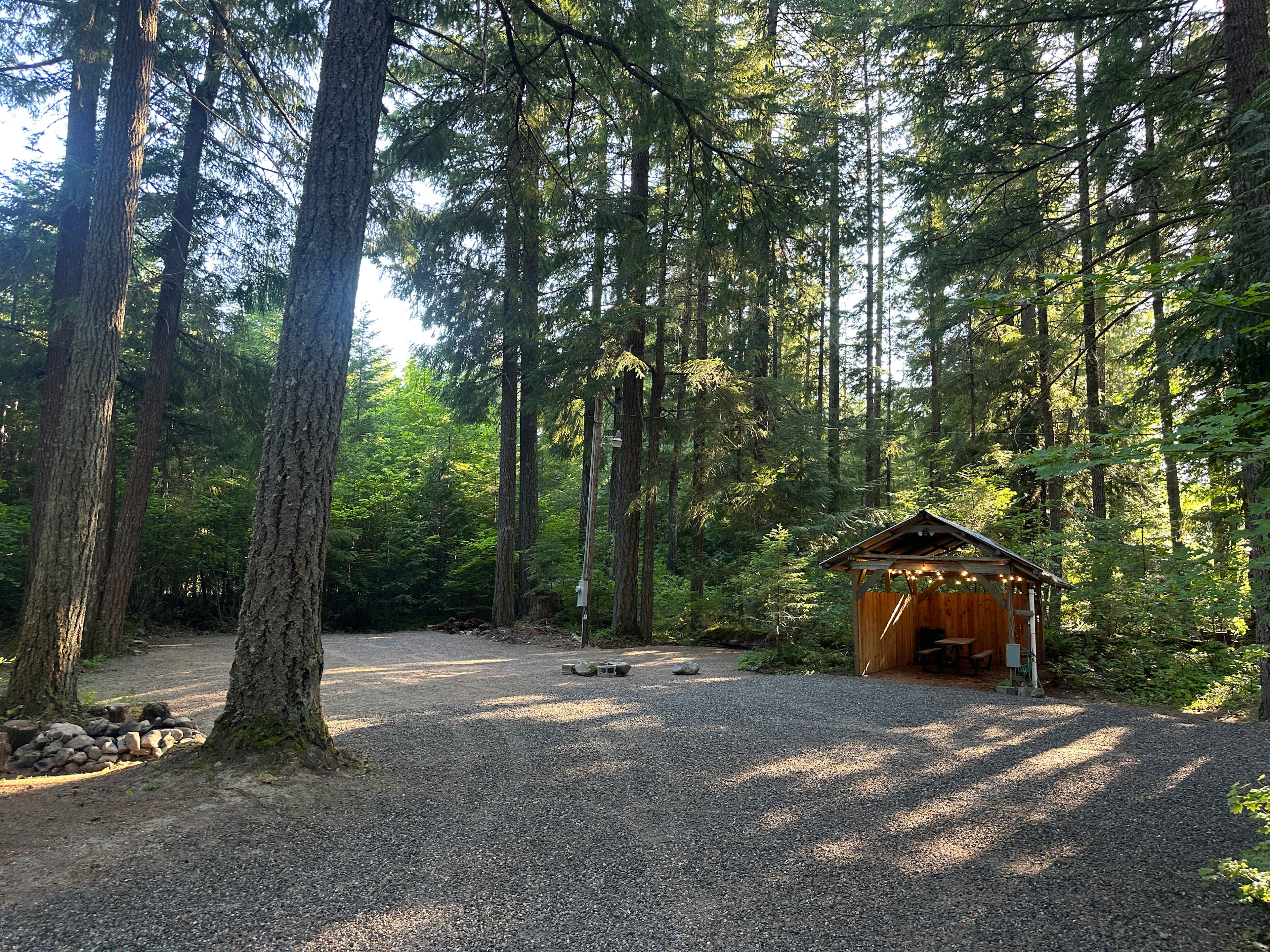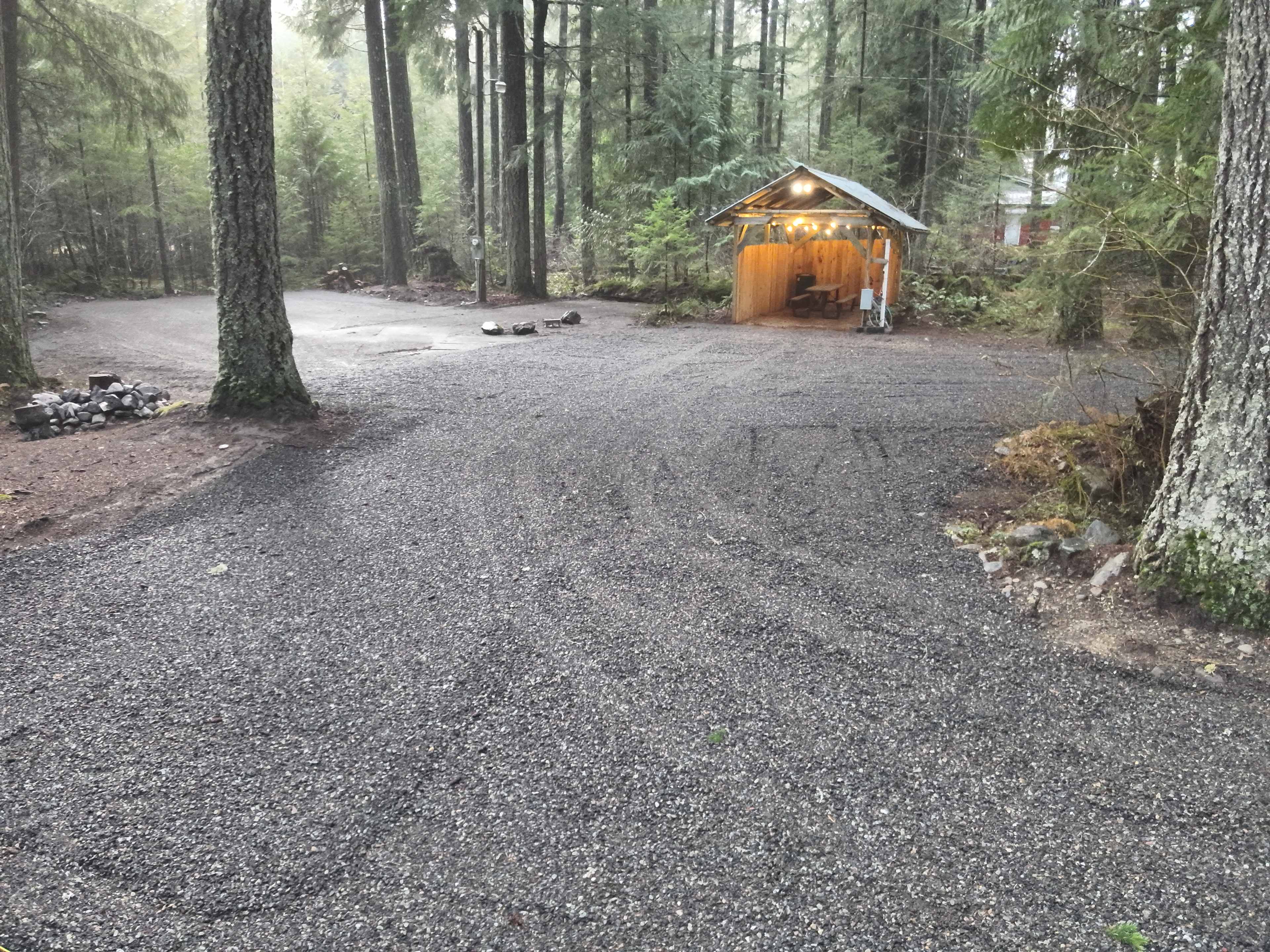 December 2024: the residence shown in the photos has been removed, significantly increasing parking space. Please see photos at end for current conditions. If you are looking for an uncrowded, truly private and memorable RV parking spot to call home for a while, then this is for you. Sink your teeth into the heart of the Pacific Northwest: we guarantee you won't be able to finish all the hiking trails within a 60 minute drive radius. This is an outdoor paradise waiting for you to explore, or simply sit back and enjoy. The lighted picnic shelter will allow you to make and eat meals, play games or simply sit and talk after the sun goes down. Be sure to bring your horseshoes and play a few games in your own horseshoes pits. The fire pit is huge and will allow plenty of room for everyone to sit around it. You'll feel like you're in the middle of the forest, but just a few miles from the amenities of Packwood, including a grocery store, gas, hardware, auto care, restaurants, and a museum. This is an established RV parking place that has been privately used, but is now made available for others to use. Please note: there are no restroom or toilet facilities provided; you must provide a vehicle with a bathroom. The roads leading to the site are scheduled to be plowed after snowstorms, but the property itself will not be plowed. Packwood does receive snow on occasion, but usually not a lot. The real snow happens at White Pass and Mt. Rainier. However, please watch weather reports and come prepared.