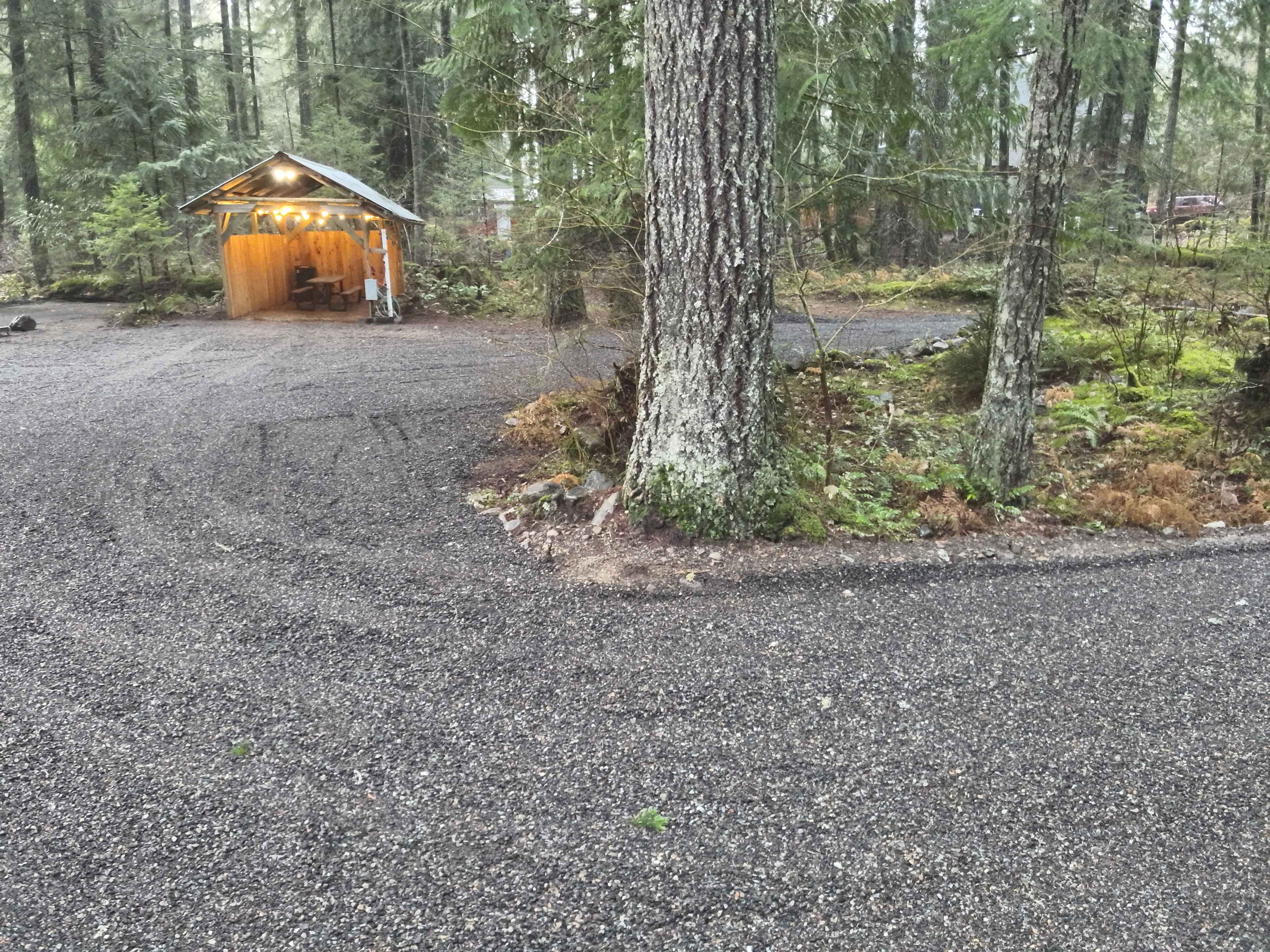NOTE: OUR PROPERTY WAS NOT AFFECTED BY DEC 2025 FLOODING The Largest and Most Private RV Parking in Packwood—Compare and See for Yourself! Escape the crowds and discover your personal retreat at the base of Mt. Rainier! Spanning nearly an acre of tranquil, old-growth forest, this property offers unmatched privacy & space. If you’re looking for peace, quiet, and natural beauty, this is where your journey begins. This is the largest and most private RV site in Packwood, offering space to relax and unwind like no other. We invite you to compare with other options and see what makes this property truly special. What You’ll Love: Spacious, Level, and Graveled RV Parking: Complete with 30-amp electric, water, and septic hookups. Private Fire Pit: Perfect for evenings under the stars. Covered Picnic Shelter with Lighting: Enjoy meals or gather, rain or shine. Convenient Access: A U-shaped, pull-through driveway or easy back-in/out option, plus a large paved cul-de-sac nearby for hassle-free RV maneuvering. A Gateway to the Pacific Northwest! Centrally located to iconic destinations, this property is your perfect basecamp for adventure: Mt. Rainier National Park: 12 miles to the Stevens Canyon entrance and 28 miles to the Nisqually entrance (via summer access). White Pass Ski Resort & Pacific Crest Trail: Recreation for every season. Cowlitz River & Packwood Lake: Great for fishing, kayaking, and relaxing by the water. Mt. St. Helens & Mt. Adams: Iconic landmarks within reach. Though secluded, you’re just minutes from Packwood’s shops, restaurants, and gas stations. Relax and Recharge! Hear the distant sounds of Butter Creek as you enjoy the peaceful forest setting. Spend your days exploring, then gather around your private fire pit or relax under the covered shelter to reflect on your adventures. Reservations require a self-contained RV or vehicle with a toilet. One tent allowed if accompanied by an RV with a toilet. Maximum occupancy: 6 guests. Reserve your spot today and experience the best RV parking Packwood has to offer!December 2024: the residence shown in the photos has been removed, significantly increasing parking space. Please see photos at end for current conditions. If you are looking for an uncrowded, truly private and memorable RV parking spot to call home for a while, then this is for you. Sink your teeth into the heart of the Pacific Northwest: we guarantee you won't be able to finish all the hiking trails within a 60 minute drive radius. This is an outdoor paradise waiting for you to explore, or simply sit back and enjoy. The lighted picnic shelter will allow you to make and eat meals, play games or simply sit and talk after the sun goes down. Be sure to bring your horseshoes and play a few games in your own horseshoes pits. The fire pit is huge and will allow plenty of room for everyone to sit around it. You'll feel like you're in the middle of the forest, but just a few miles from the amenities of Packwood, including a grocery store, gas, hardware, auto care, restaurants, and a museum. This is an established RV parking place that has been privately used, but is now made available for others to use. Please note: there are no restroom or toilet facilities provided; you must provide a vehicle with a bathroom. The roads leading to the site are scheduled to be plowed after snowstorms, but the property itself will not be plowed. Packwood does receive snow on occasion, but usually not a lot. The real snow happens at White Pass and Mt. Rainier. However, please watch weather reports and come prepared.