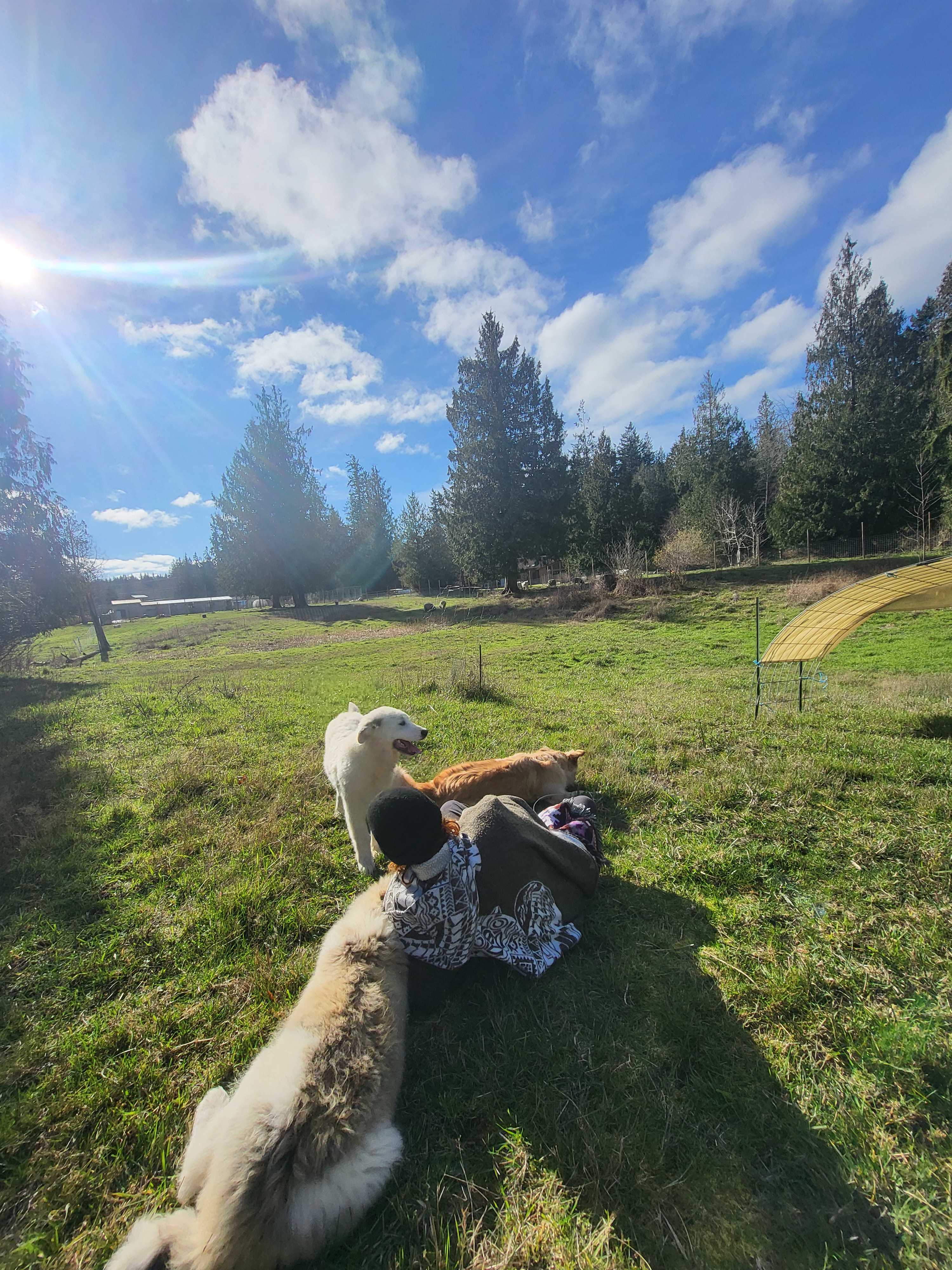 Dun Tun is a 5-acre working smallhold we are assisting back to a healthier level. We have animals, plants and people contributing to improving the soil and biodiversity. You may see our meadows high and full of wildflowers or cut short for our animal's benefit. Both make for excellent views from our campsites. 2026 update! We welcome Tio and Rosie, our two new livestock guardian dogs, to the DunTun this year. They are still puppies and learning their jobs so please keep all pets on leashes and away from livestock areas. Our sheep, goats and dogs are on pasture during the day, inside electric fences, so please use caution and keep your pets and kids safe. We have also installed a perimeter fence around the back four acres but please continue to keep pets on leash for their safety and the safety of our animals. We built a new shelter for the compartment toilet for added privacy and weather protection in 2024! We are expanding our farm stand, in addition to eggs you will now find seasonal produce, firewood when fires are permitted and souvenirs made by folks who live and work on our farm. Both campsites are unimproved spots in our future silvopasture food forest. Located on the "back four" acres of our property, they're surrounded by trees and seclusion. We back to a small airport and are near a main road and you will probably hear traffic. Both campsites have trees and space protecting them from views of people or development. We improved our road in 2022 so bring your vehicle with no worries. We're just outside of the busy part of Port Townsend and close to farms, beaches and historic sites. Go into town for festivals, restaurants and the farmer's market. Chimacum, just two miles away, has several nice restaurants, breweries and farms that offer tours. We're two miles from restaurants, hardware stores and a grocery store in Port Hadlock. We're just 45 minutes from Olympic National Park and 2 hours to the Olympic Peninsula Coast so we're a great stop over. Hablemos Español. Si hablas Español y necesitas comuncarte tenemos una persona quien puede atenderte.