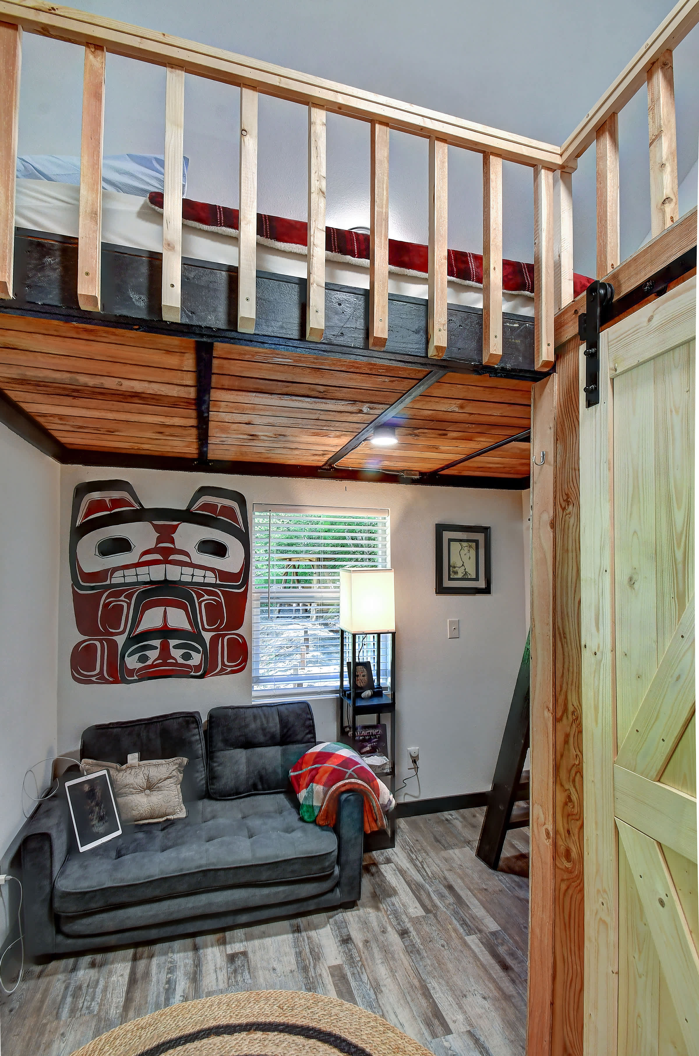 Reconnect with nature and the beauty of the Pacific Northwest! This tiny cabin has 1/2 bath with heat, kitchenette, toilet, private hot tub, Queen and twin bed, small table and chairs and shared outdoor shower. We are located right at basecamp for Mt Rainier and a stones-throw to small grocery stores and pubs. Private access to the Nisqually River and a 10 minute drive to the entrance of the National Forest. Everything you could want for group camping, a romantic getaway, or climbing/hiking Mt Rainier! *Please read in entirety before booking* There is currently limited linen service provided so please be prepared to bring bath and hand towels with you (We reflect this in a lower cleaning fee after your stay) . Bedding is provided in the lofts. We have a convection oven perfect for small easy cooking, a two burner cooktop, microwave, kettle and mini-fridge. There are napkins, plates, cutlery and cups. Between cabins 1 and 2 is a utility sink next to the shower for washing bigger items. On very rare occasion, our hot tub may not be available for use on your first nights stay. There are times during the busy season when we will need to change the water for sanitation reasons. This usually requires 24 hours to reheat). We will do everything we can to avoid/limit this interruption to you and the enjoyment of your stay. Thank you for your understanding.