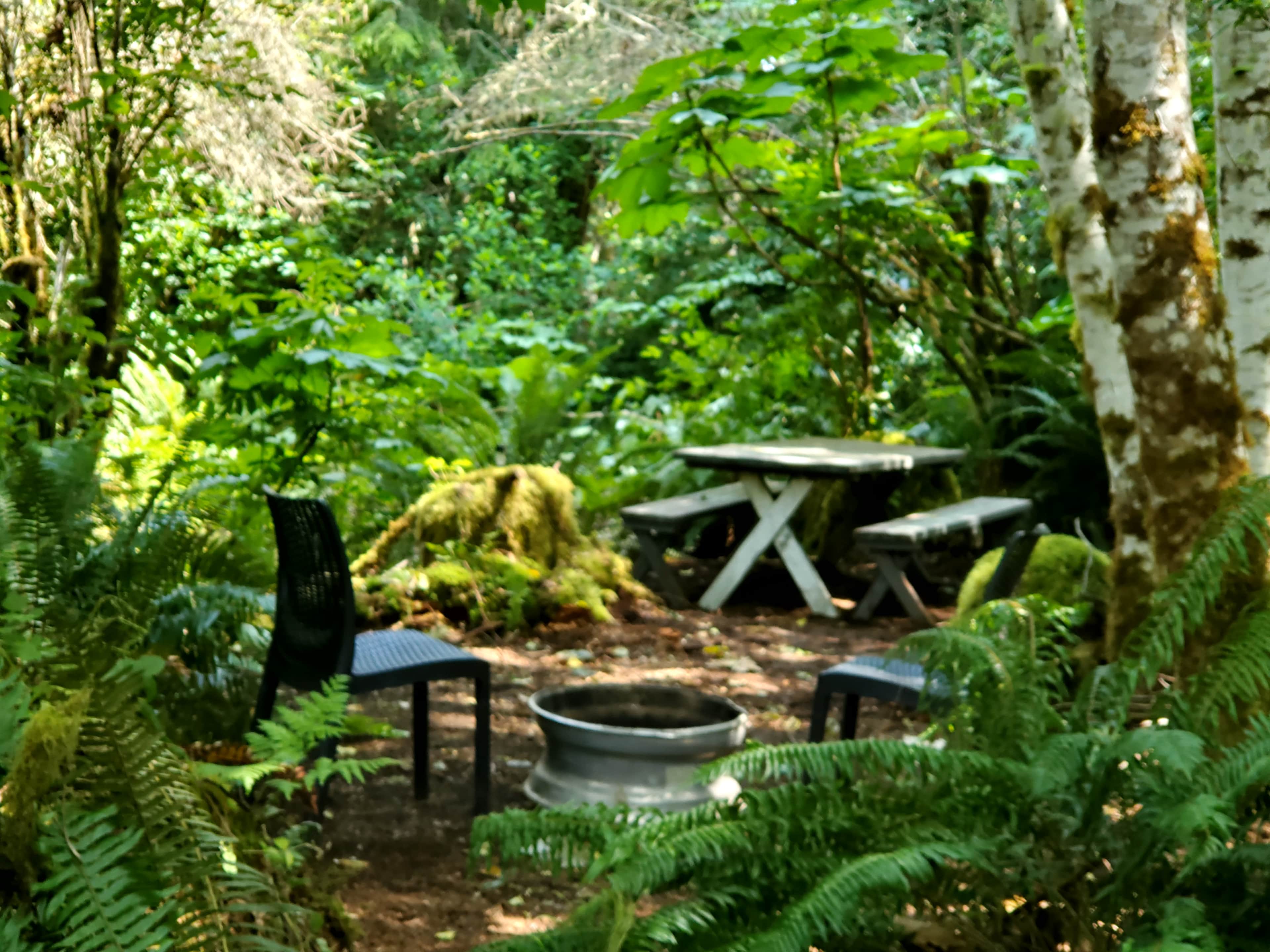 This is a cute small site perfect for 2 people. Or a camper van. With its own table and chairs and firepit. Room for a small tent.Park at your site so you don't have to pack your gear. There is an extra parking spot accross the road just a few feet away if you want more room in your site. Your at a campground but it's so secluded you'd think you're the only one there. Lots of trees Surround you With a little campfire and picnic table. We have elk that sometimes comes through and deer and there are bear and cougars out there but they don't come in the campground. That we've seen. It's Beautiful getaway with a private beach just 1 minute down our driveway below Weekend Warriors. There is a private campsite down there at the end of the road to the left. So we ask if do visit the beach please enter it to the right on the creek side. There is parking down at the bottom and also to the right on the top of the last hill before the beach Labeled parking. It's such a short distance you could easily walk down. But the walk back to camp is up hill just a bit. We are right in the heart of the Olympic National Park with both Lake Crescent and lake Sutherland just 10 minutes away. The Elwa River and Salt Creek are 15 min down the road from camp. Lyre River is our Neighbor. You can walk our beach to mouth of the river. Murdoch beach is also a 5 min drive. We also have a lot of round rocks and fossils on our beach. Check out our other spot Follow the link below to Beach https://www.hipcamp.com/en-US/land/washington-private-beachfront-mxvhy2on