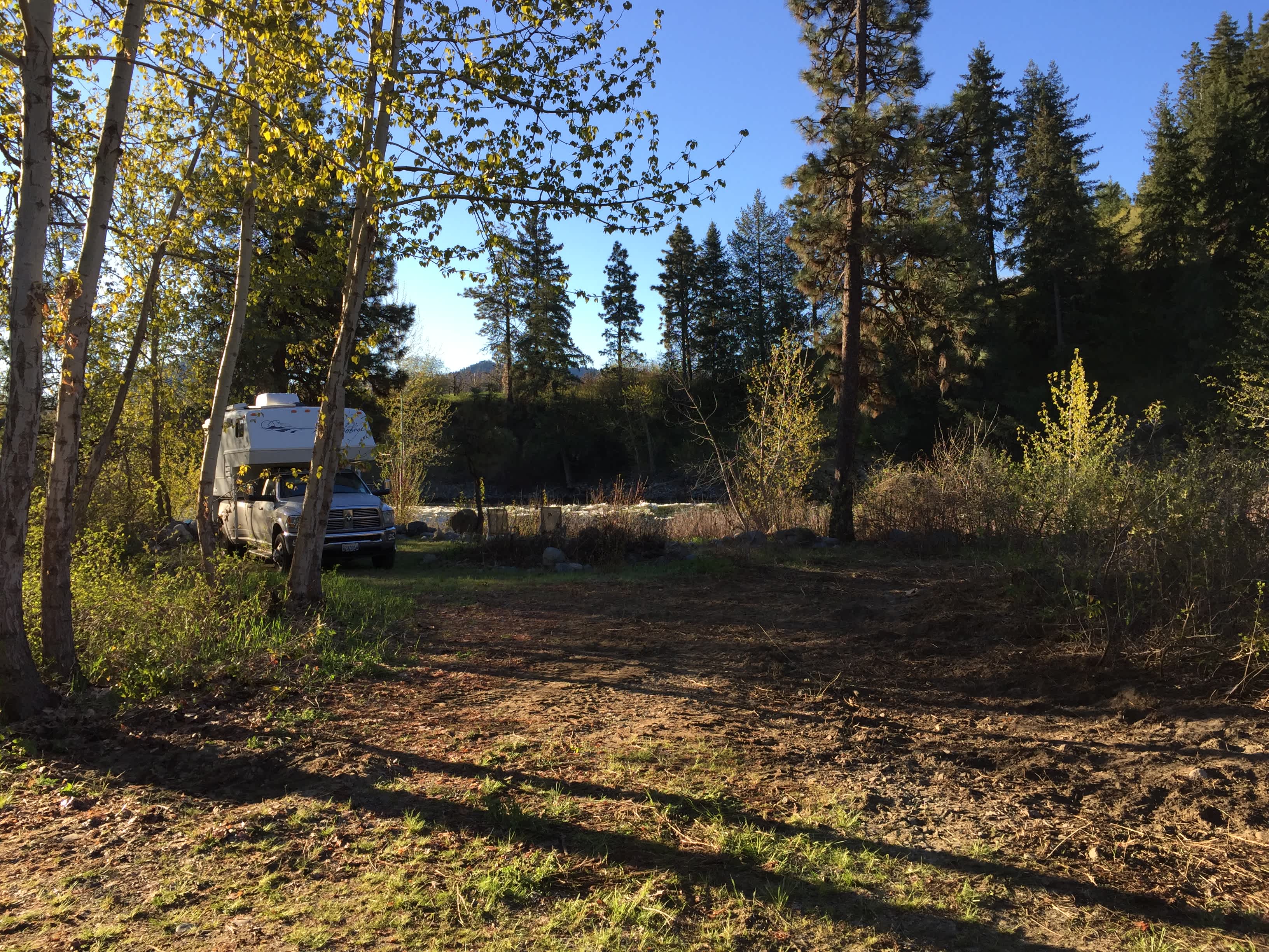 We have always loved the Wenatchee river and when we spotted two acres for sale on the river, we promptly bought it and built a house for our future retirement. The land is on the best part of the river with bouncing rapids but also a calm swimming hole formed by an eddy. And located only six miles East of the Balvarian town of Leavenworth WA and twelve miles West of Wenatchee WA. Since our house is three hundred feet away from the river, there is a large natural area with about 400 feet of waterfront, and five campsites suitable for RVs all with river views. We would like to offer families or private groups the entire camp for the weekend or longer.