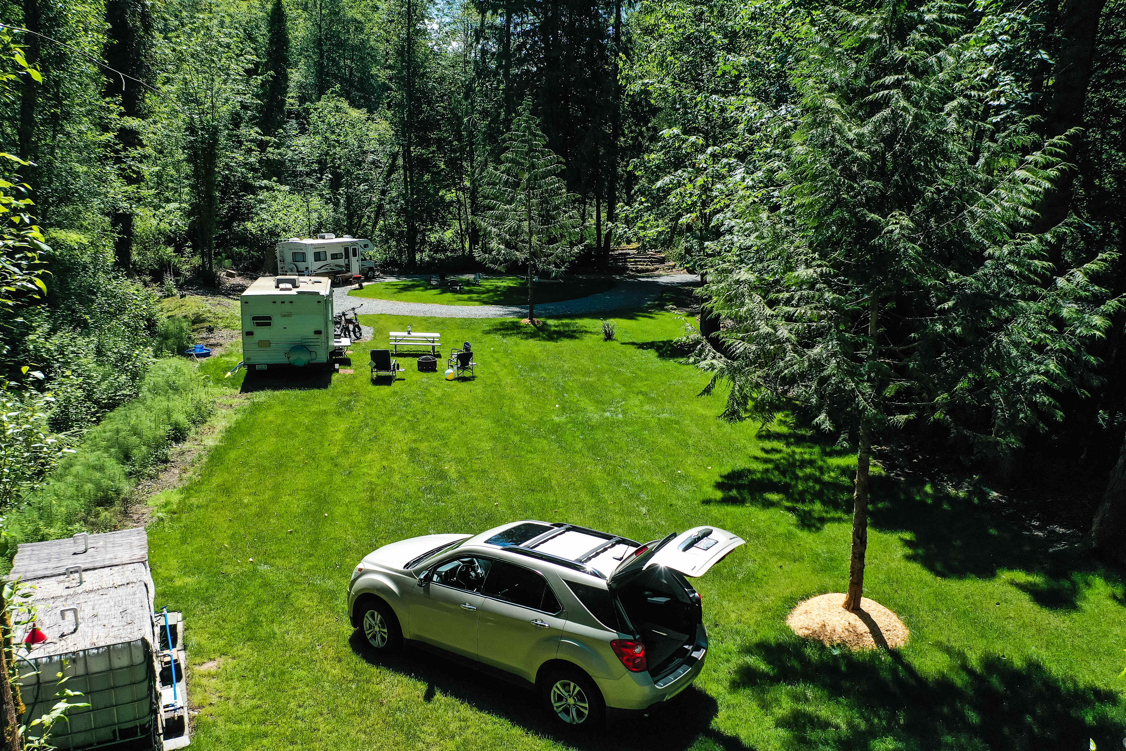 To watch a video of this amazing site please type in Witt’s End Campground on YouTube. Witt’s End Campground is located in Buckley Washington. Approx 1 acre of lush campground to yourself. Additional tent space across the street next to a beautiful Creek. Code will be provided after booking to enter the property. There is power onsite but you need a 100 foot extension cord to reach your RV. No potable water on site. Generators are allowed. Porta Potty Toilet on site. Site is not Fenced.