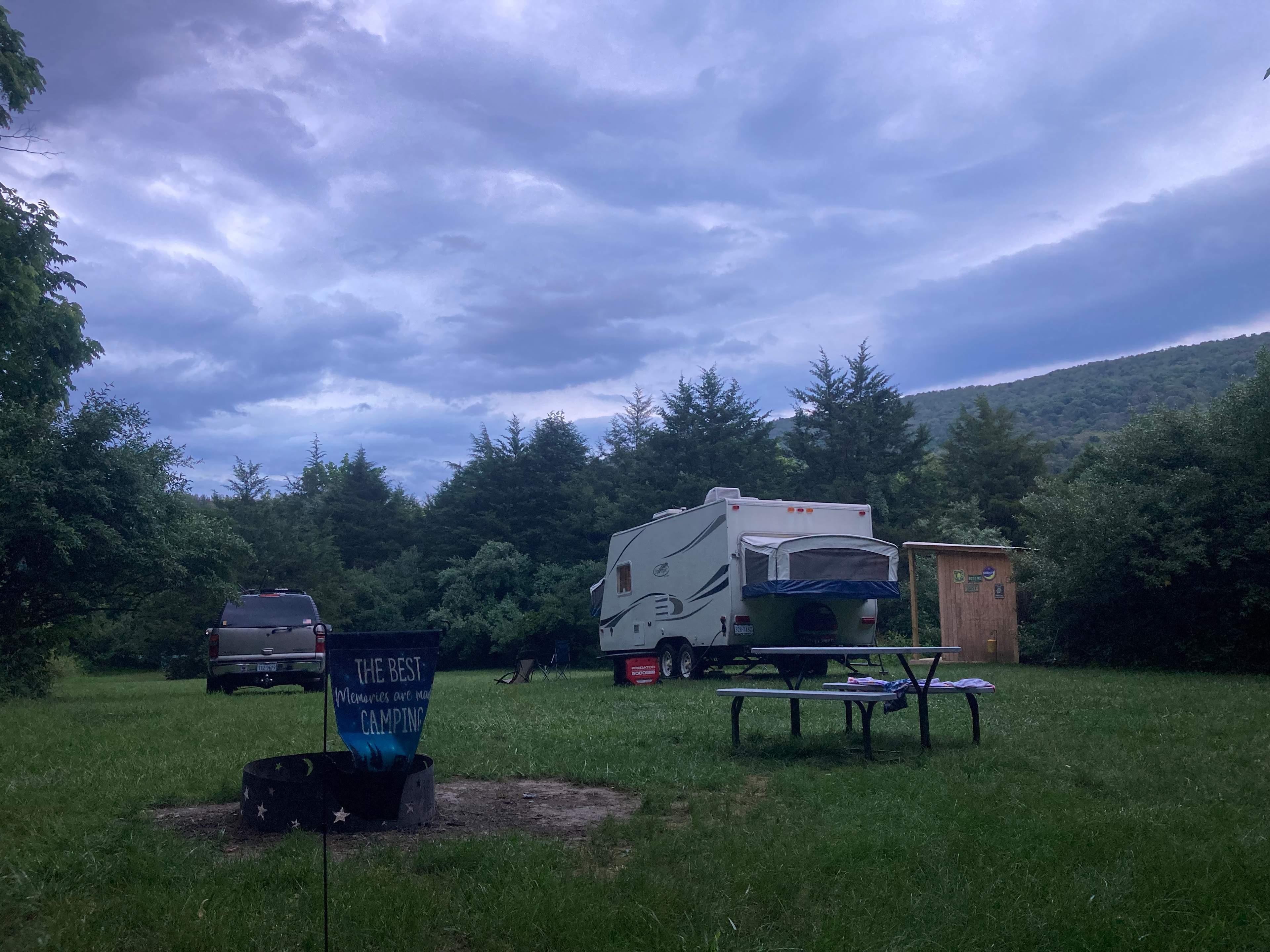 The camping property is about .25 acres. It’s right on the river. The is a decline slope down to the river that can not be access with a boat trailer. This is for kayaks and smaller vessels only. The river is a perfect for swimming and coming off right next to your campsite! There is a public access about 5 miles up that can be used for a pick up point to float the river. The lot is beautiful with many opportunities for wildlife. There is the Capon Springs resort 10 minutes away with lots of options for hiking, massage and swimming. Wardensville is also about 10 minutes away, for your grocery needs. The site is 100% primitive. All toileting, trash, camping and personal items must be brought and taken with you when you leave. Pop up campers and tents are the best but RVs can be parked with prior approval. We hope you enjoy the river!