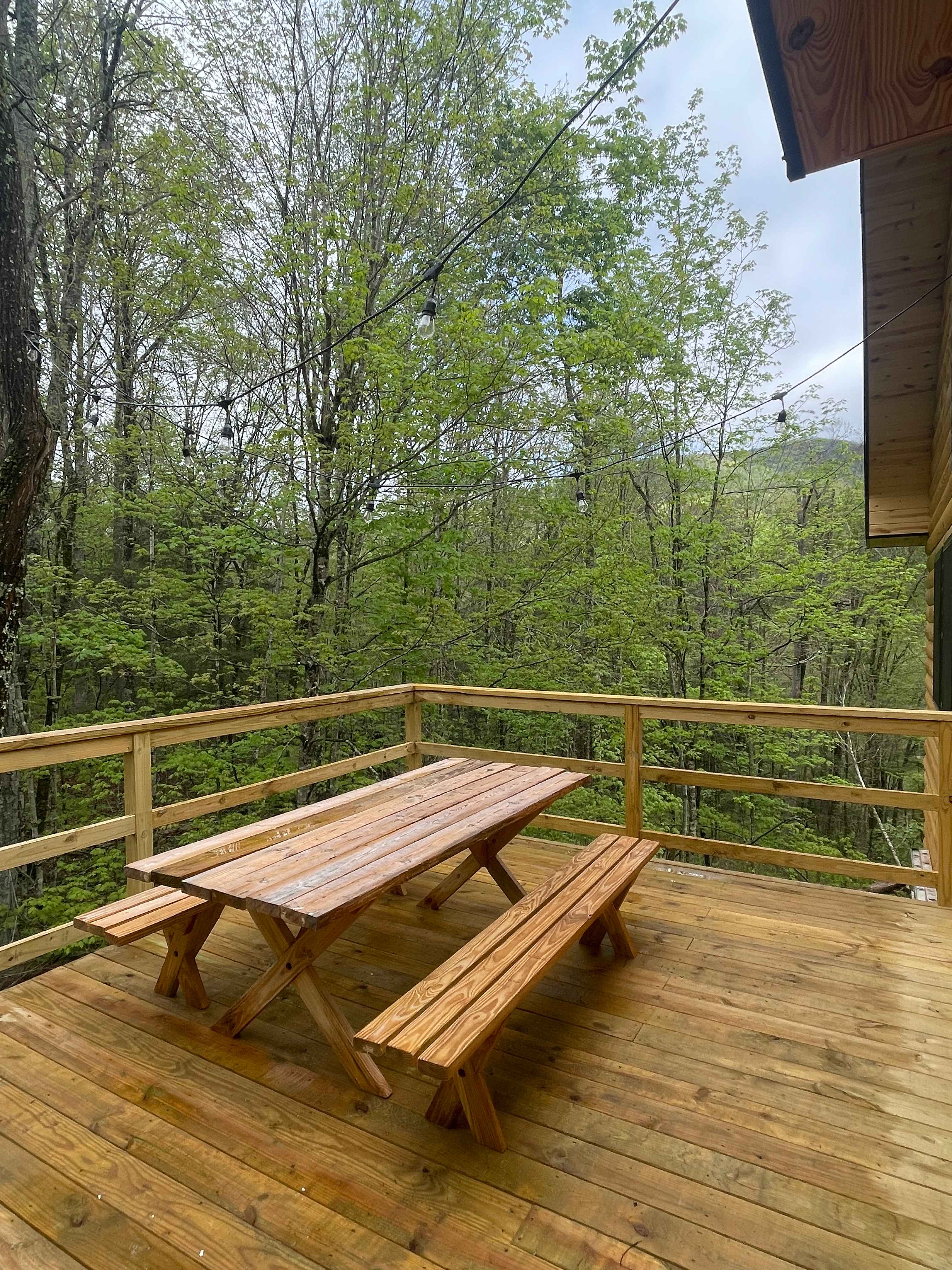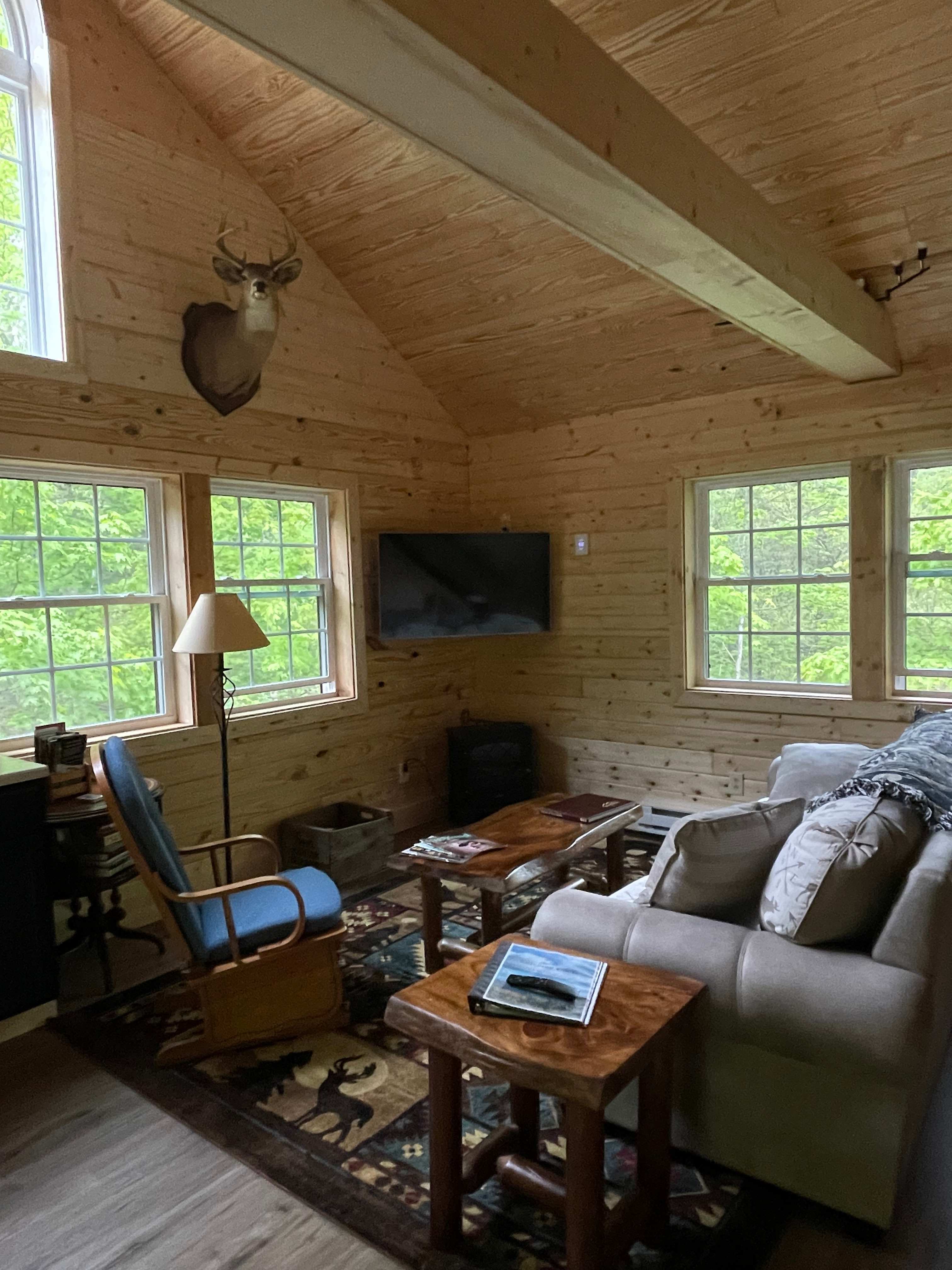 Avoid the crowds and enjoy the peace and quiet of rural West Virginia at our peaceful and private mountain retreat cabin. It's just minutes to Snowshoe Resort in a calm and secluded setting. Walk down to the creek on your private hiking trail, relax around the fire pit, have a meal outside on the deck and enjoy the cool breeze - it’s all there for a perfect mountain getaway. Our main house is nearly half a mile away - you will enjoy total quiet and privacy. Note there are stairs to enter. Our garage is available for locked indoor mountain bike or ski equipment storage during your stay; $50 fee per stay and must be arranged in advance. The space Our cabin is fully private (there are no visible neighbors and our main house is 1/2 mile away on the property). Guests enjoy the entire living area and raised deck (the first floor is a garage for our tractor). Guests enjoy a full kitchen (including dishwasher) stocked with coffee, cooking oil, salt & pepper, cooking utensils and pots and pans. The kitchen includes both a Keurig (coffee pods included) and a drip coffee maker for your convenience. Guests also enjoy two private bed rooms and a loft area upstairs. Both bedrooms and the loft have hotel quality queen size beds (3 queen size beds total) with usb charger stations, bed and bathroom linens, hotel mattresses and pillows. The cabin and Pocahontas County are located in the National Radio Quiet Zone around the Green Bank Observatory and so there is no cell service. Most guests can connect to the FAST fiber optic Internet WiFi (not satellite) which is very reliable for calling over WiFi and texting. Mountain and forest views from every window. The creek is just a short walk down the hill (and has water in it except when it is very hot and dry). We’re only 8 minutes (3.5 miles) to Snowshoe, but in a very calm and secluded location. Enjoy everything WV and Pocahontas County has to offer while you are here. Some suggestions are: Elk Springs Fly Fishing Resort & Ellie Mae’s Restaurant - 16 miles Mim's Kitchen - 14 miles Snowshoe Ski Resort, Mountain Biking, bars, brewery and restaurants - 3.5 miles Highland Scenic Highway (hiking, sightseeing, picnicking and fishing) - 12 miles Cass Scenic Railroad State Park - 13 miles The famous Kickin’ Chicken Restaurant, coffee shop, barber shop, BBQ restaurant, and Dollar General - 2.8 miles Ski Barn Rentals and shopping - 2.5 miles Hillsboro Pub - 29 miles Greenbrier River Trail Access (fishing, hiking, biking, kayaking) - 14 miles Watoga State Park - must see 1920’s classic park and hike up to the watch tower, stop for ice cream at Jack Horner’s Corner after - 30 miles Guest access The entire home is yours. You will be nearly 1/2 mile from our house so will enjoy total privacy. Other things to note Our tractor used to plow snow etc is located in the garage below the cabin so we may access that from time to time. Our driveway is kept plowed regularly in the winter, but due to the mountain location AWD or 4WD vehicles are recommended in the winter months. Very important is to download directions to your GPS app before leaving as cell service can be spotty on the way. We're happy to help with directions if needed! And, finally, there are stairs to access our place.