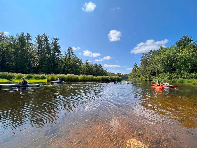 This is what "UP North" truly means. A much-needed retreat and vacation for my husband and I! The RV spot is perfectly picked near the Manitowish River, and close enough to the beautiful "modern cabin" themed lodge, and office. With full hook up for your RV; and was simple for us since we have a shower. The ground under our RV, has pebbles so it never got muddy. We were surrounded by tall trees, grass, the woods, and the sound of a flowing creek and of course the river. Walking into the lodge was a sweet cedar aroma, and visitors relaxing on comfy couches, and ottomans. Soft hip music plays in the inside, as well as the outside, during the open hours. There is an acoustic guitar in the corner, a record player with an array of records; sitting on a large fireplace. And of course it is decorated with antique snowshoes, wooden canoes, games of all sorts...and plenty of gifts representing River's Edge Adventure Co. Our friendly doodle was highly welcomed inside, by guests and by the friendly employees. They even add to the dog loving space, with their own fur babies. The owner Chris/family & employees were full of wonderful knowledge, stories, and ideas for a great visit. We easily kayaked up and down the river, with ease. Renting our first e-bikes into Boulder Junction was quite an adventure. I do recommend taking a bike path map though; because it can easily be confused by the navigational husband lol! I can't say enough about this gem. If only I could keep it a secret.