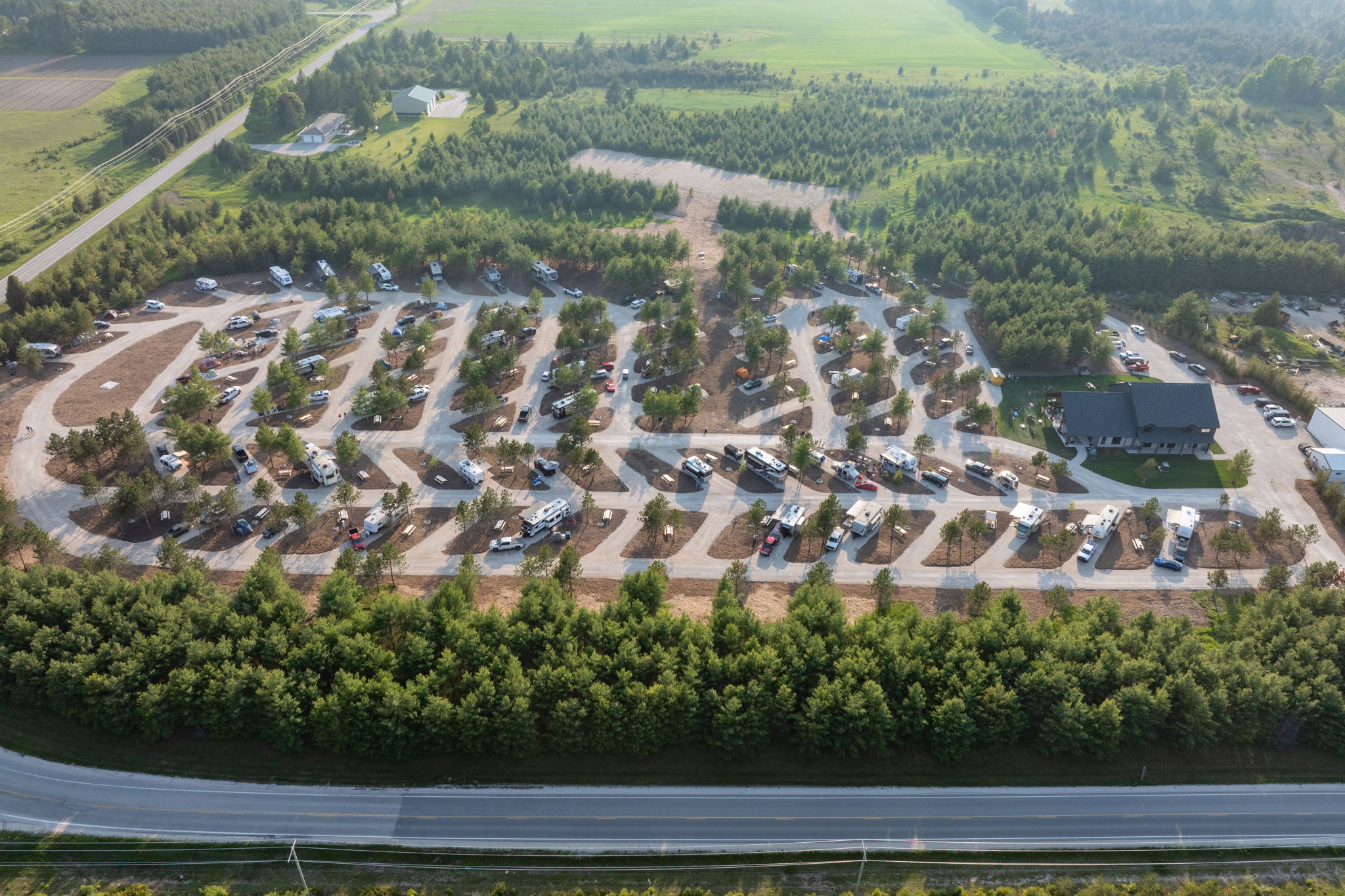 CAMP Door County is the newest luxury camping playground on the Door Peninsula. Located just outside of Sister Bay (home of the famous “Fall Fest” each October), our campground offers 20 full hookup seasonal sites and 56 spacious sites equipped with full hookups, including 50/30/20 amp power, water, and sewer services. In addition, we have 25 Primitive Camping sites and 5 Scandinavian Cottages. Each site features a picnic table and a fire ring, perfect for gatherings under the stars. Experience the beauty of nature of your Door County surroundings while enjoying our modern facilities. Amenities include 24/7 Heated Showers, 24/7 Restrooms, 24/7 Laundry, Pine Provisions (grocery & retail store), The Pine Lounge & Bar, Swedish Sauna, Dog Park, on-site Mountain Bike Trails, Children's Playground, Propane Filling Station, Bike Rentals and Bike Cleaning Station. This campground is designed to be your "Basecamp" while exploring Door County while providing ultimate comfort, making it an ideal destination for families and outdoor enthusiasts alike.