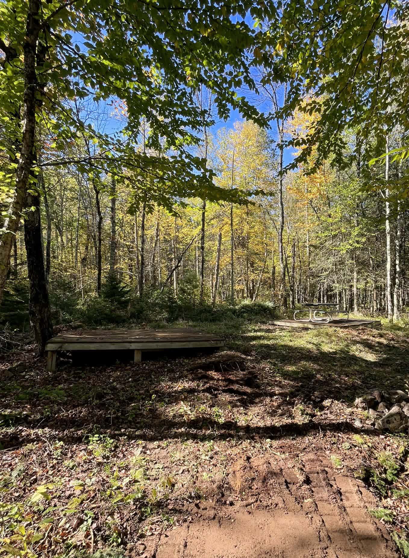 Note: New pictures coming this spring! These were taken during construction in the fall, which we just wrapped up at the end of September. Escape to the wilderness! This private three-acre wooded site is perfect for anyone seeking a secluded camping experience. With 300 feet of frontage on the East Fork of the Chippewa River, easy access to countless lakes and rivers, and thousands of acres of the Chequamegon National Forest at your doorstep, this property won’t disappoint any outdoor enthusiast. There’s plenty of space to set up your camper or tent on the gravel pad, or you can meander down the cleared path to the river’s edge, where you’ll find your own private park complete with a fire ring, picnic table, two tent platforms and breathtaking views of the flowing river. Note: the river camping area is approximately 150 yards down a walking path. The flat and level gravel camping pad offers both 30- and 50-amp service and accommodates campers up to approximately 20 feet in length, with pull-in access (not a pull-through site). Water is available from our new well on the property. There are also hundreds of miles of nearby ATV/UTV trails to explore. Many mountain bike trailheads are only about 30 miles from this location as well.Note: New pictures coming soon. These are pictures taken during construction which we just wrapped up at the end of September. There is only one site on our property that consists of a flat RV/Tent camping spot with electric and water hookups on a gravel pad and a tent camping area closer to the river down a 500 ft walking path which you can choose to use for camping or just hanging out. When booking you have the entire 3 acre property to yourself with 300 feet of private river frontage on the Chippewa River, Shore power (30 amp; 50 amp), and water from our new well. You can park your camper and vehicle and set up camp on the flat gravel pad area closer tot he road, or you can walk and pack in to the riverside camp which has two 10x10 wood platforms to set up a tent. The path to the river is not meant to be a road and should only be driven on with an all terrain vehicle. There are lots of UTV trails nearby and many lakes within 3-5 miles which have easy boat landing access for great fishing and boating.