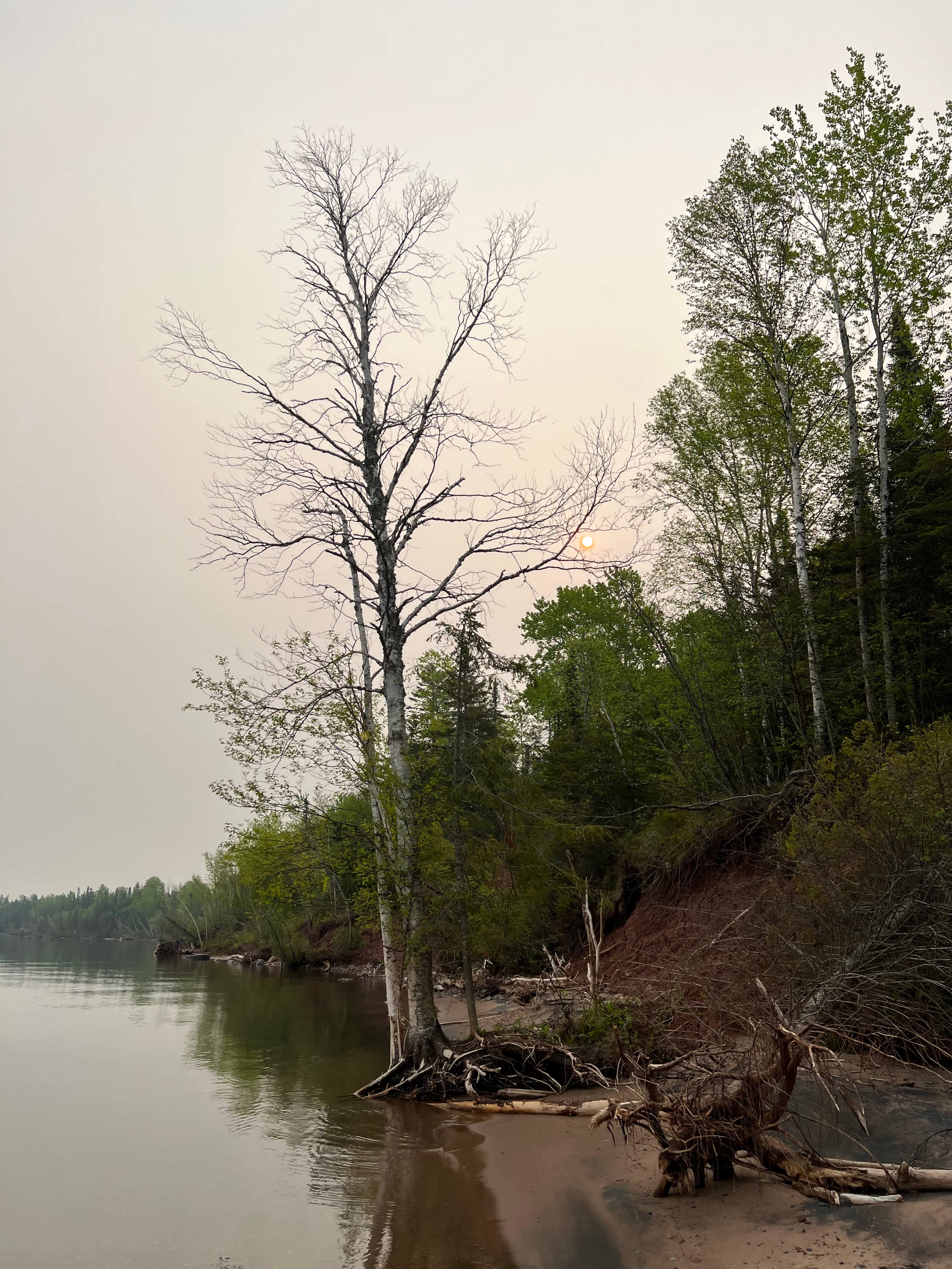 Flat area perfect for pitching tent. Firepit is provided. There is an outhouse available. Stunning views of Lake Superior with lake access. You will feel so secluded and at peace here. We only accept one booking at a time, so you will have the place to yourselves. There are outlets available for you to plug into and charge your devices. The outlet is located on the exterior of the cabin as well as the power pole. The bank to the lake is very steep so please watch your step and your children. We allow a max of 2 dogs. Please do not bring more. Excited to Host you!