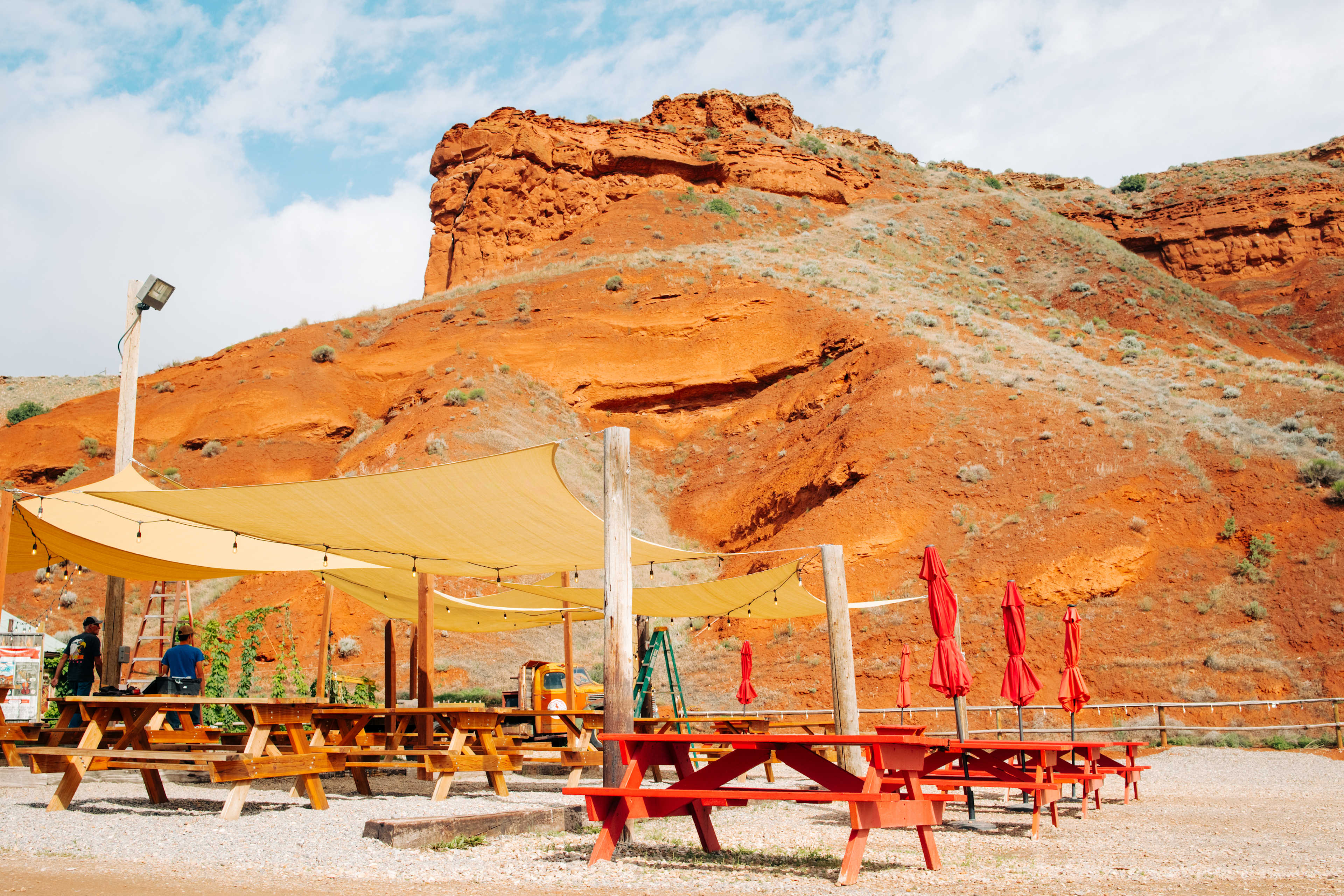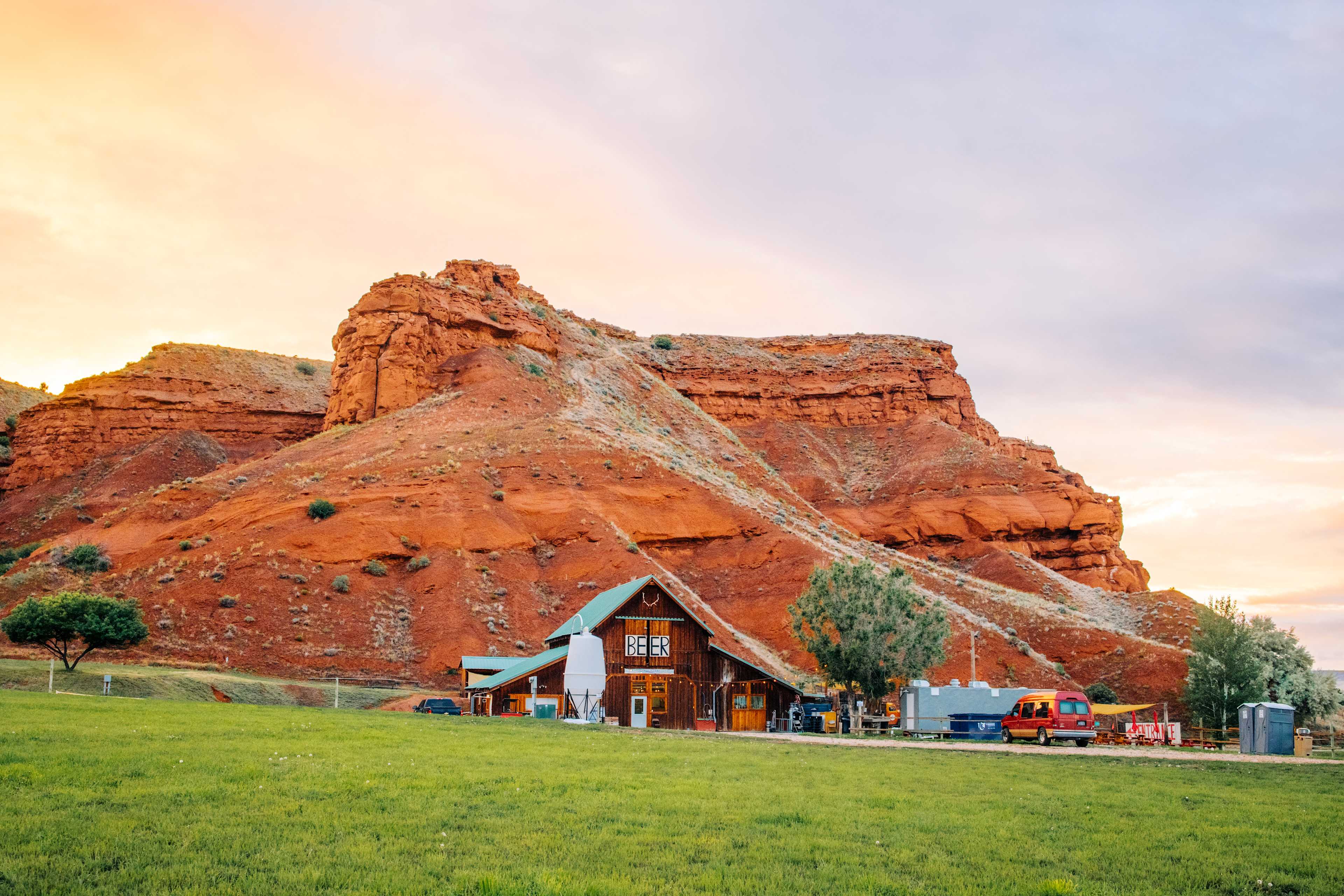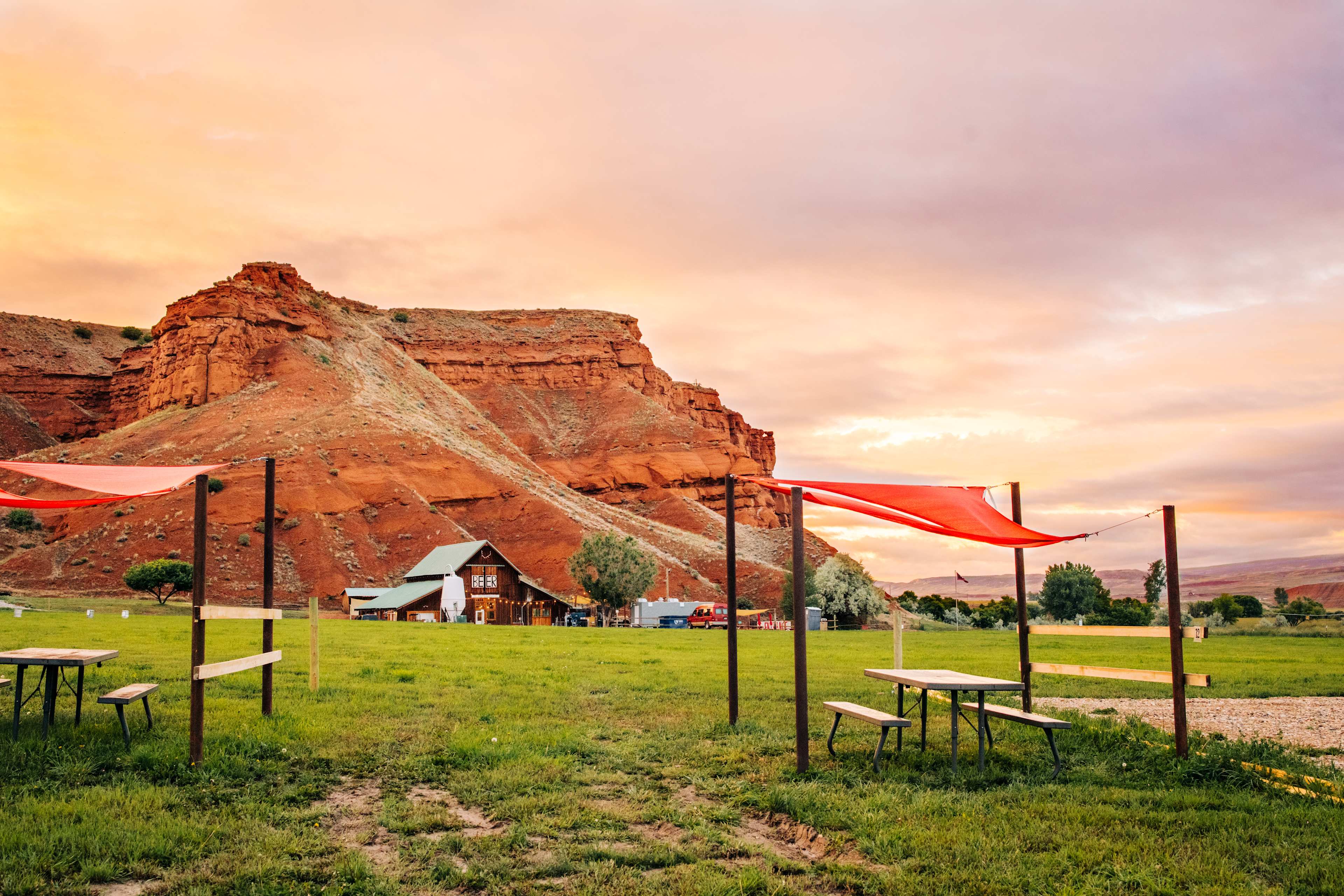 Hi, we are David and Amanda Evans! We are excited to assume management of Barnyard Campground (Formerly Ten Sleep Brewing Co. Campground). We are located in a field next to the brewery and Signal Butte, a beautiful red cliff at the base of the Big Horn Mountains in Ten Sleep Wyoming. We are surrounded by beautiful vistas! One of the best is our neighbor - Ten Sleep Brewing Company. They make some of the best beer in the state! Each small camp site offers a shaded picnic table per site, the larger RV sites do not, but are graveled. We offer nearby port-a-potties, and trash receptacles and incredible vistas all around. A very unique and beautiful brewery camping experience! We offer a unique opportunity to unplug and relax. This campground is rustic and rural! No wifi, no electricity, no water hookups. Please note! It is important to look at each sites description when booking as some sites accommodate different sized camping rigs. Also please note we are located next to a Red Vista RV park. If you turn to soon you will be at Red Vista RV park which has concrete pads. SOOOO if you are at the concrete pads you are in the wrong spot. If you love to climb and experience the outdoors this is your place. Rich in history, this ranching town was the halfway point—or ten “sleeps”—between two major Sioux Indian camps. Surrounded by working sheep and cattle farms, today’s Ten Sleep, with a permanent population of only 260, Ten Sleep is a fun detour for those on the way to Yellowstone National Park, and to the nearby Bighorn National Forest. Ten Sleep is so close to the Bighorn Mountains that you can’t see them from most places in town—the striking reddish-hued foothills block the view. But you can’t help taking in Ten Sleep Canyon, which rises into the mountains starting about six miles east of town and has grown in the past couple of decades into one of America’s top summer climbing destinations, with more than 800 climbing routes! Mention you are camping at the Barnyard and receive a discount at the brewery!